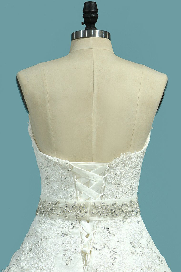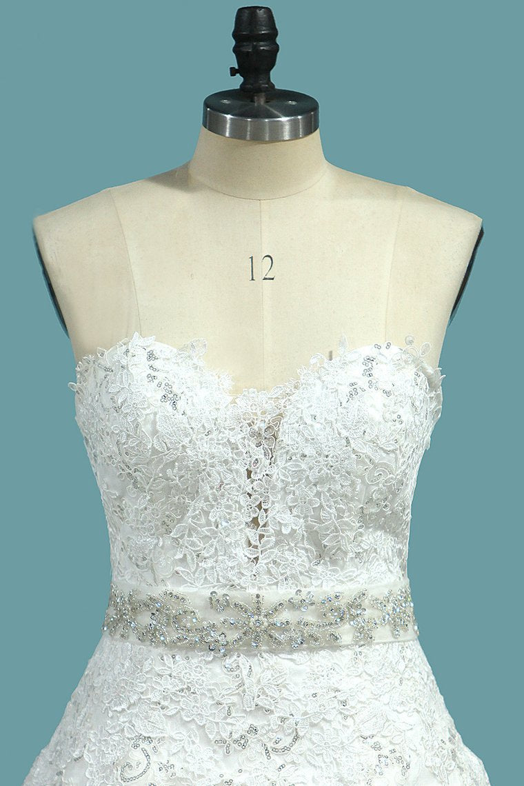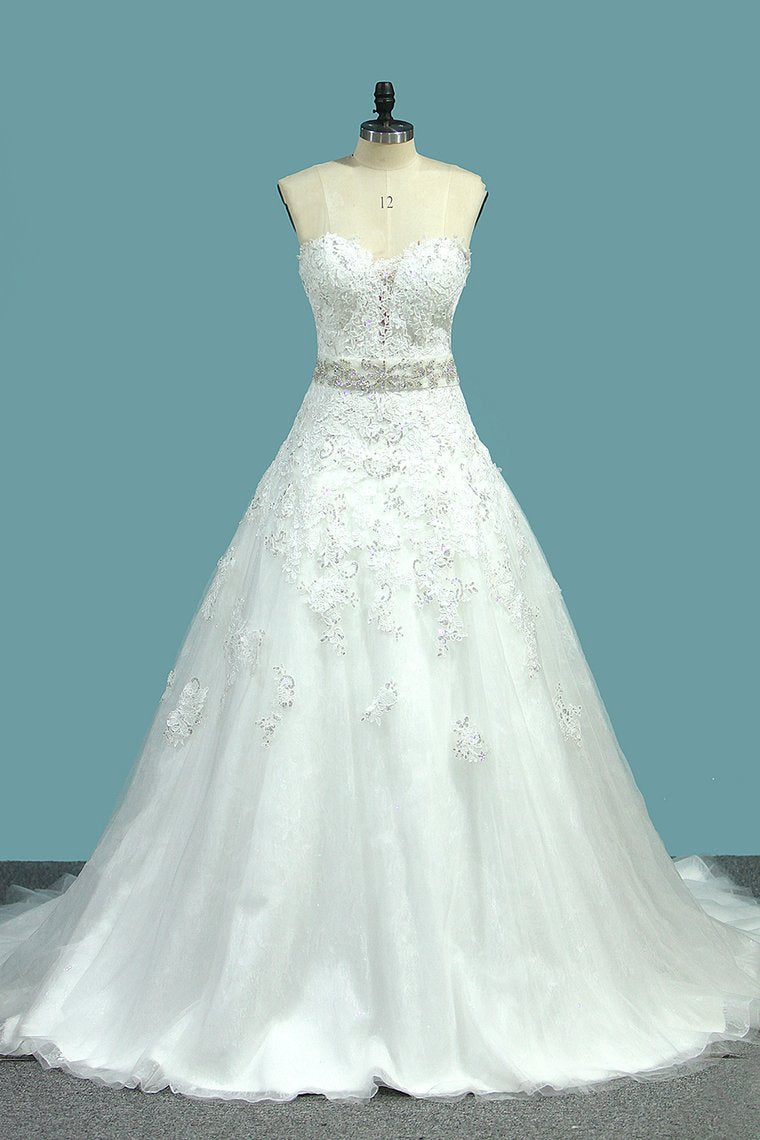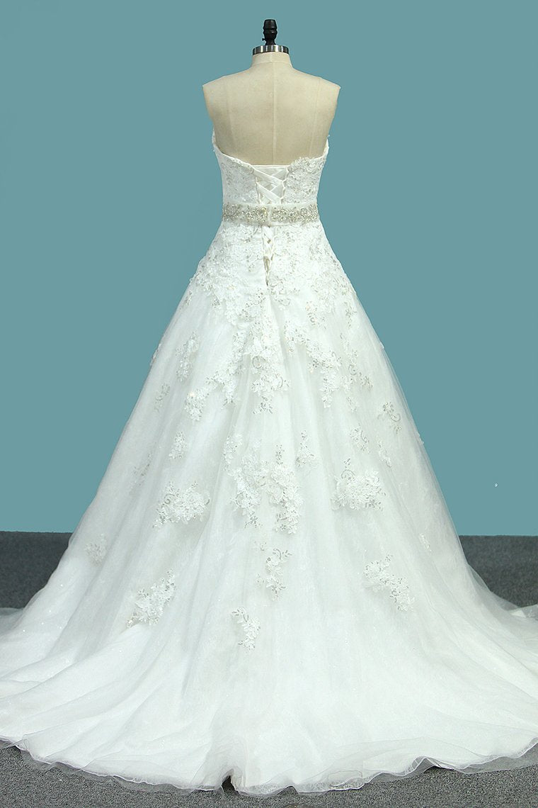 2024 New Arrival A Line Sweetheart Tulle Wedding Dresses With Applique And Beads