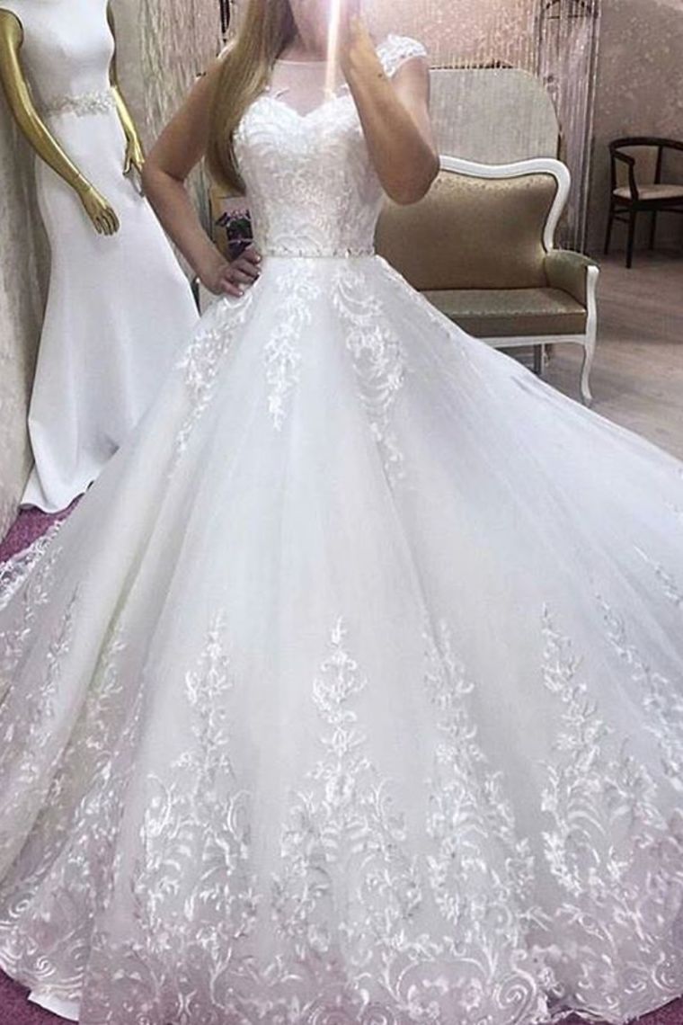2024 New Arrival A-Line Wedding Dress Scoop Neck Tulle With Appliques And Belt