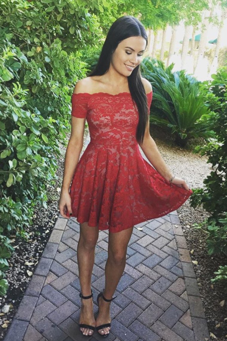 2024 New Arrival Boat Neck A Line Lace Short/Mini Cocktail Dresses