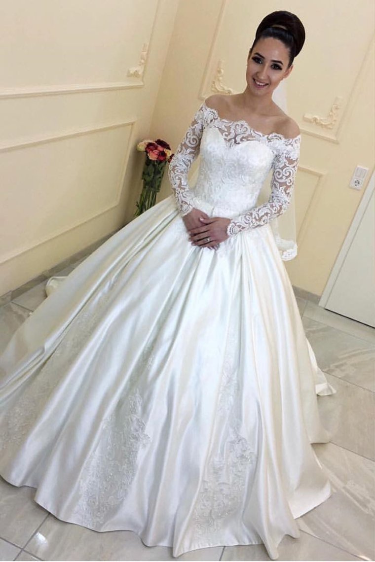 2024 New Arrival Boat Neck Stretch Satin A Line With Applique Wedding Dresses