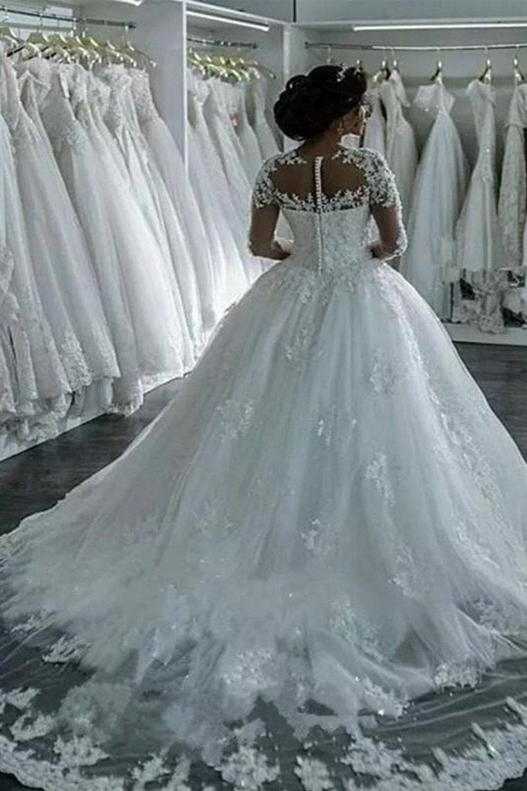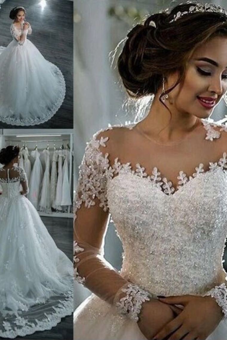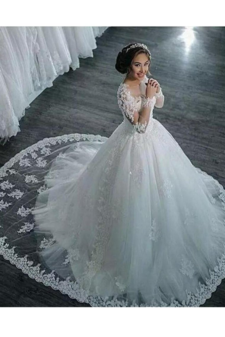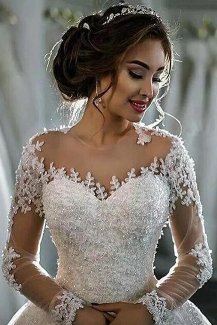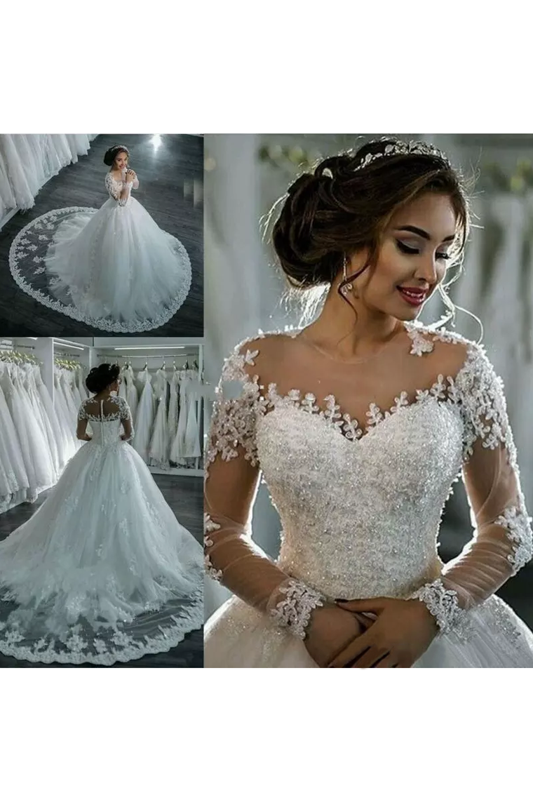 2024 New Arrival Long Sleeves Tulle Wedding Dresses Scoop Neck With Appliques