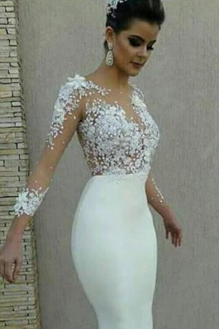 2024 New Arrival Satin Wedding Dresses Mermaid Scoop With Appliques And Pearls Long Sleeves