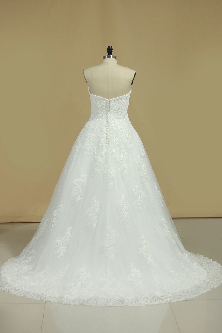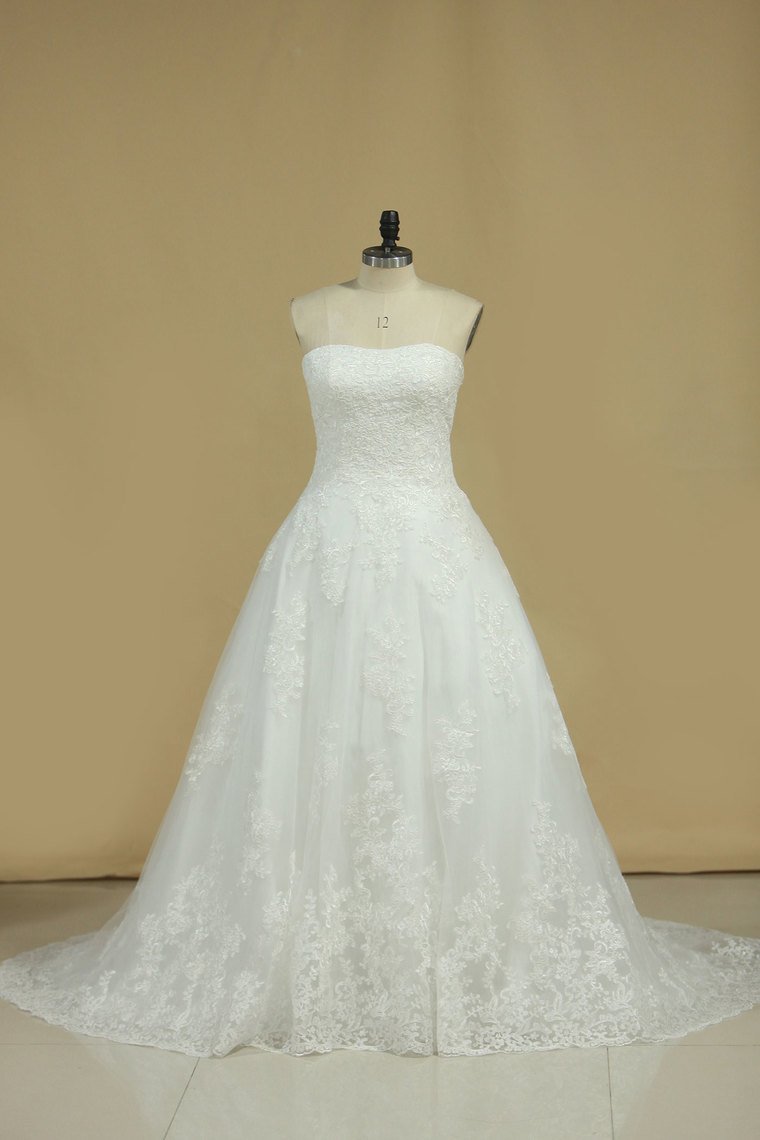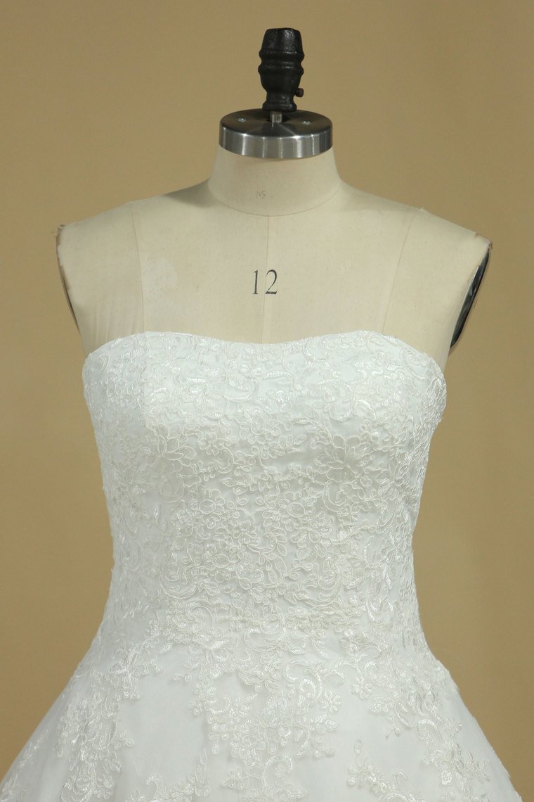 2024 New Arrival Scalloped Neck Wedding Dresses Tulle With Applique