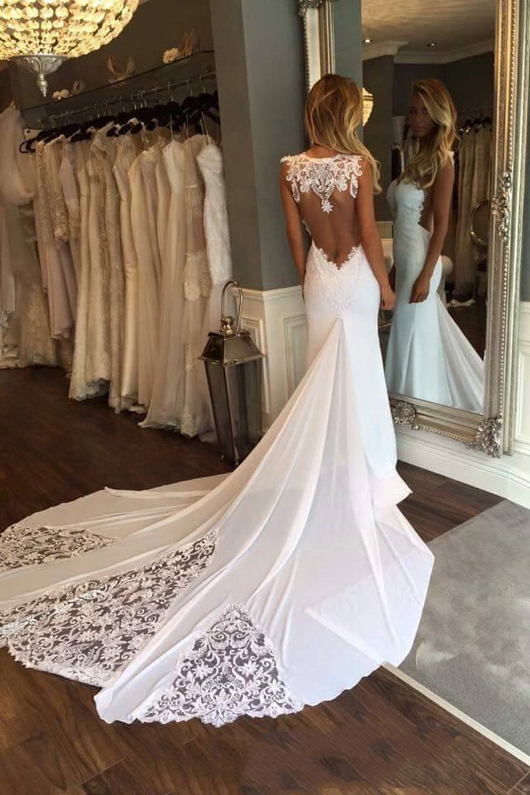2024 New Arrival Scoop Chiffon Wedding Dresses With Applique Mermaid