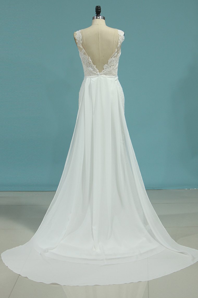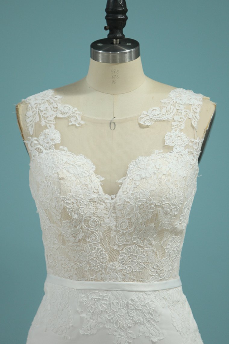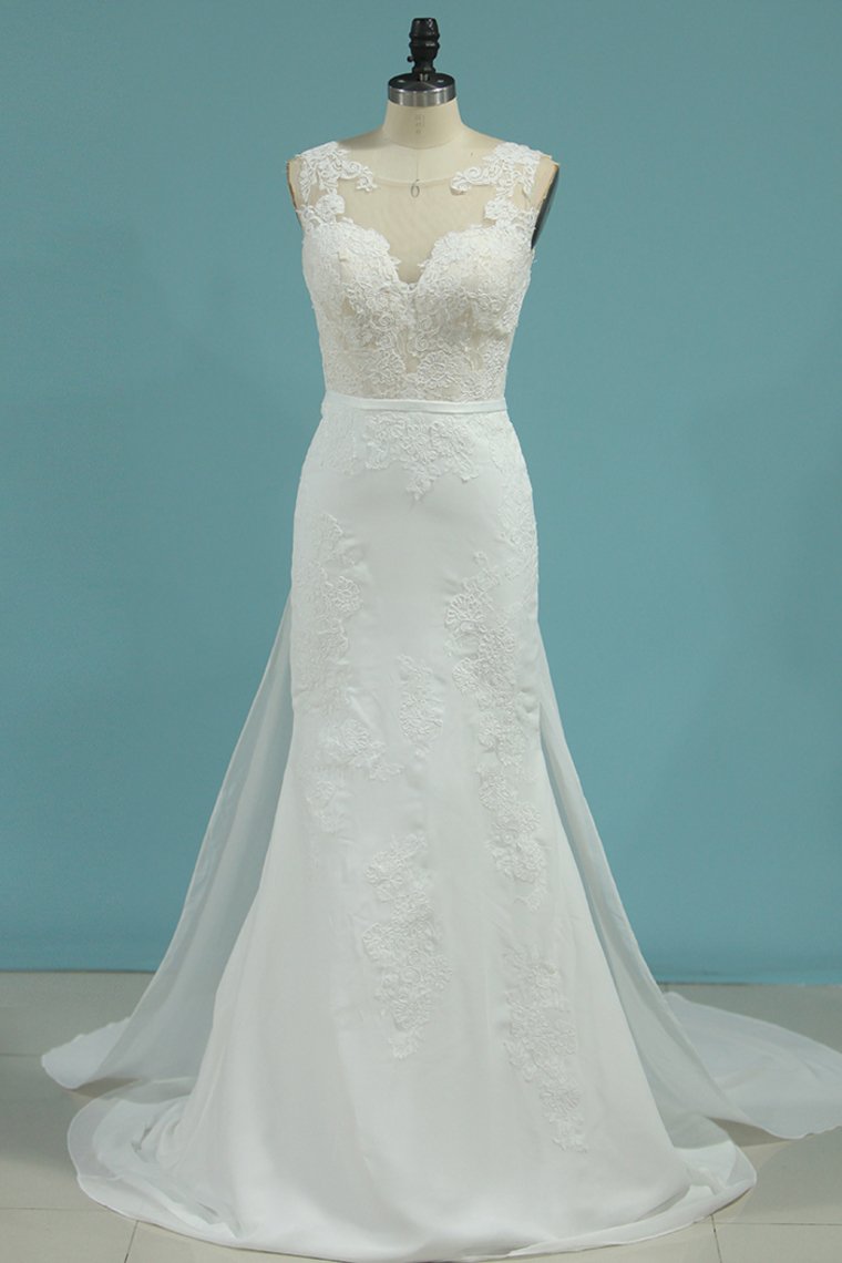 2024 New Arrival Scoop Mermaid Wedding Dresses Chiffon With Applique