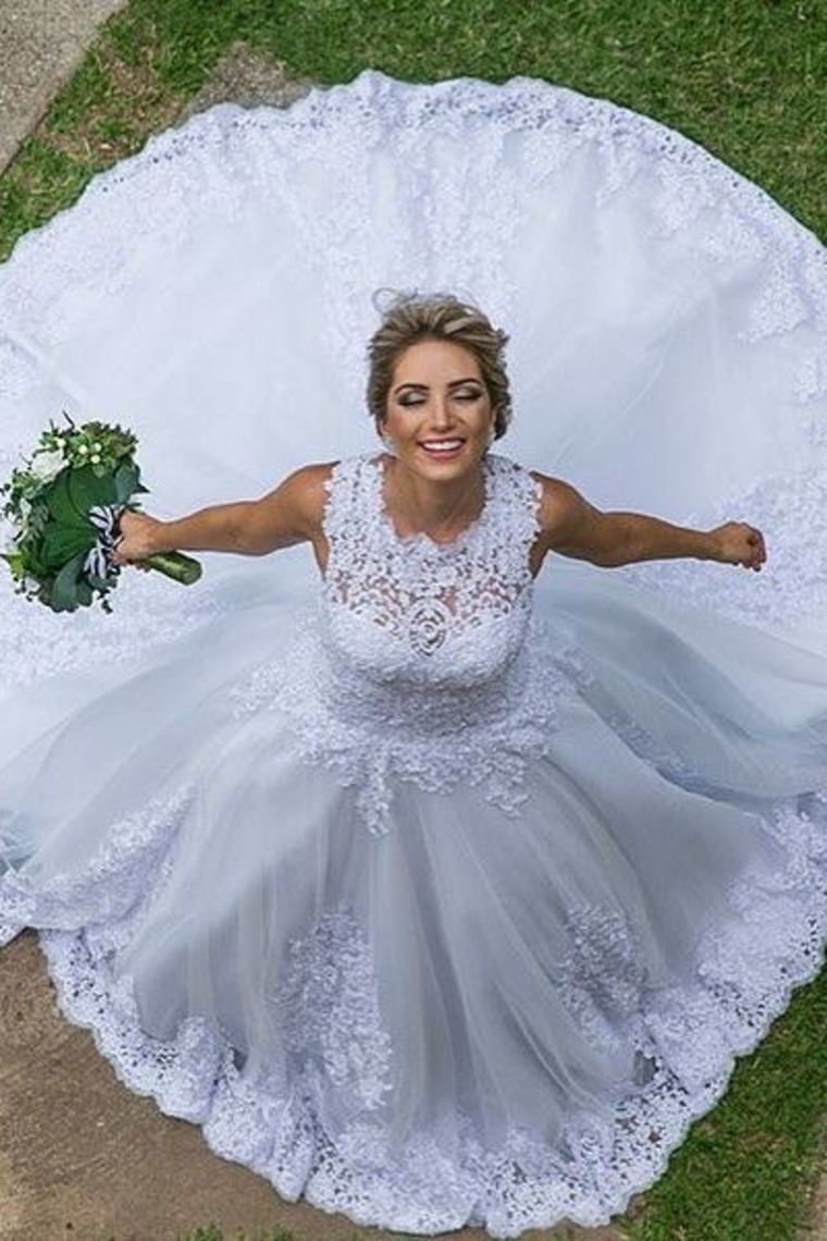 2024 New Arrival Scoop-Neck A-Line Wedding Dress Court Train With Appliques