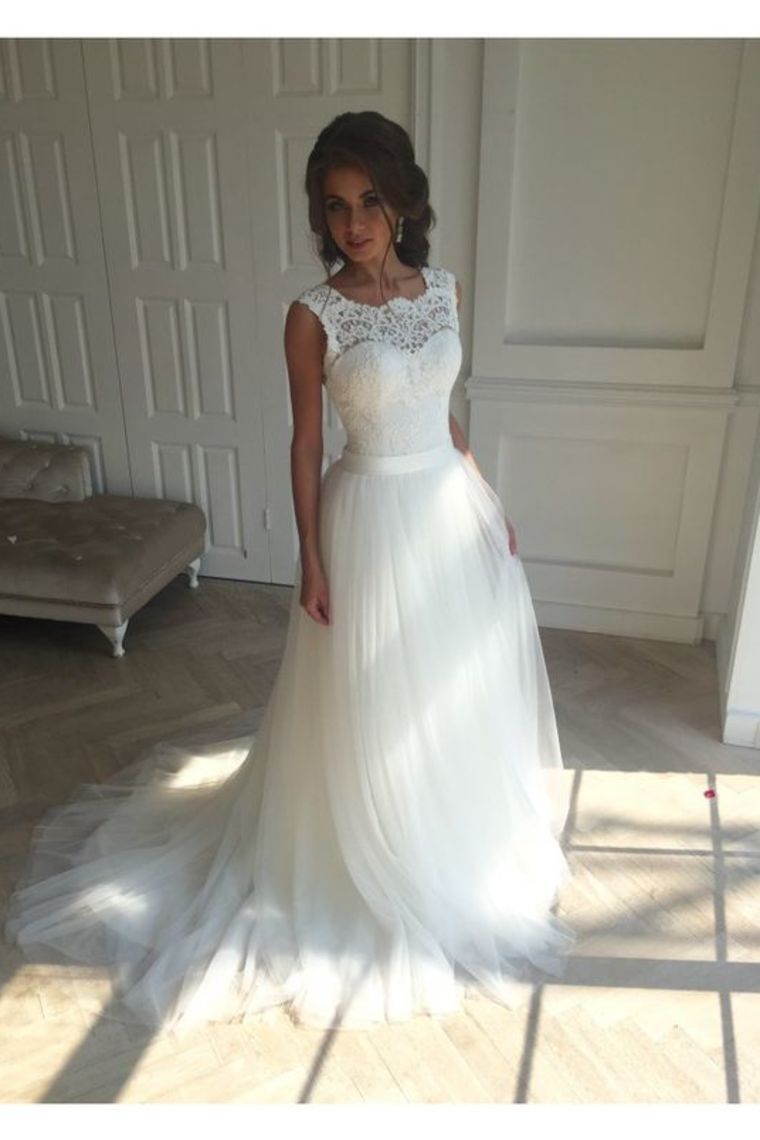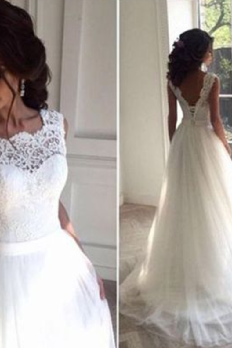 2024 New Arrival Scoop Neck Wedding Dresses A Line Tulle Lace Up