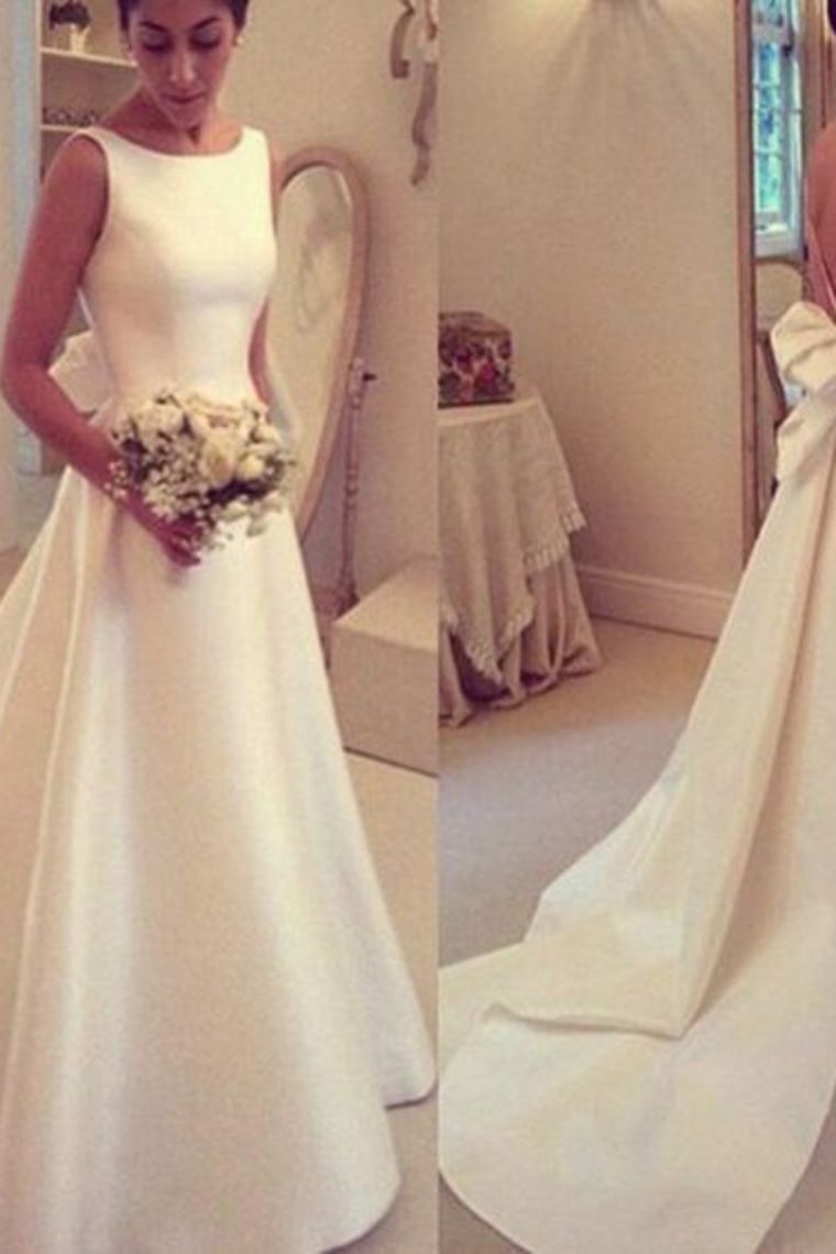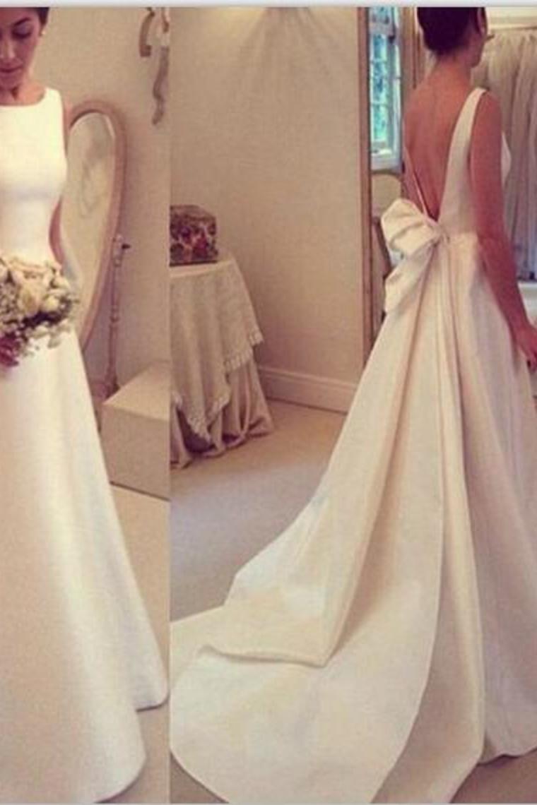 2024 New Arrival Simple A Line V-Back Wedding Dresses With Bow Knot
