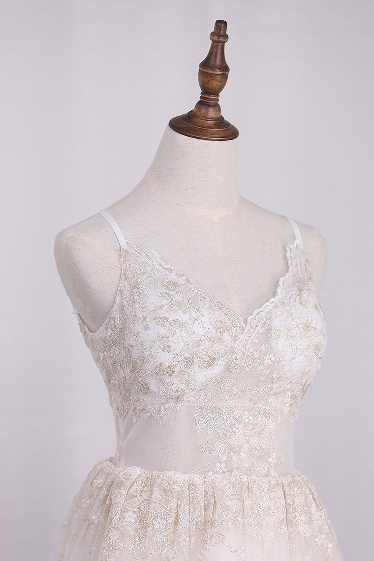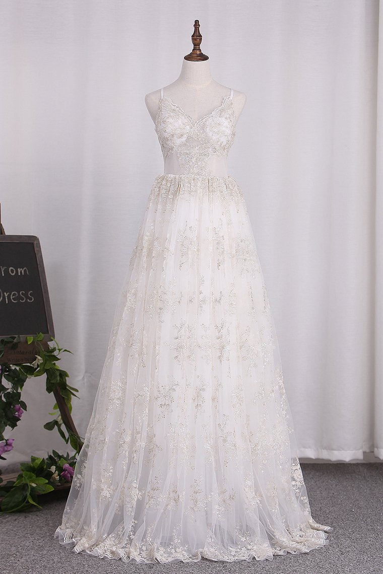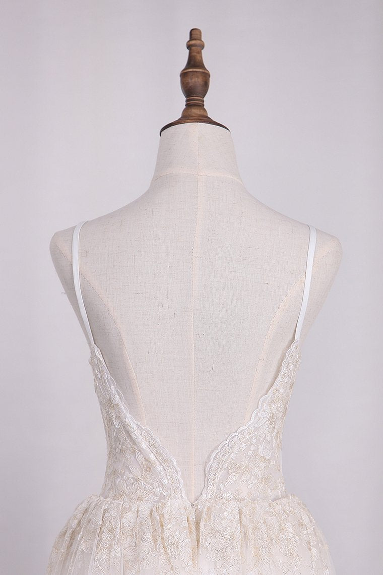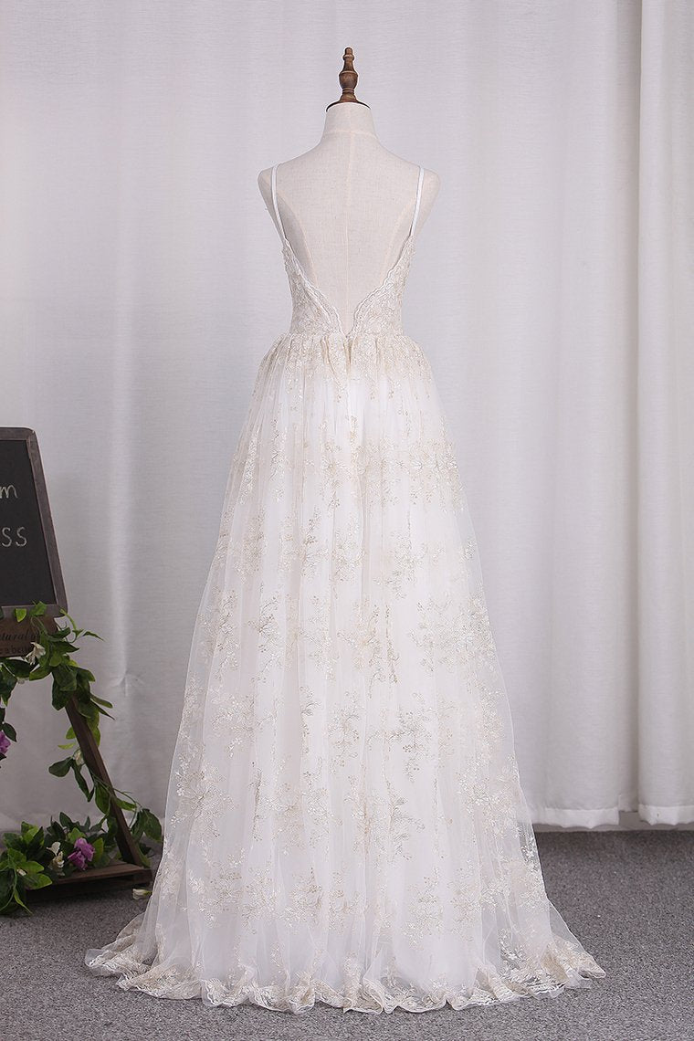 2024 New Arrival Spaghetti Straps A Line Lace Wedding Dresses Open Back