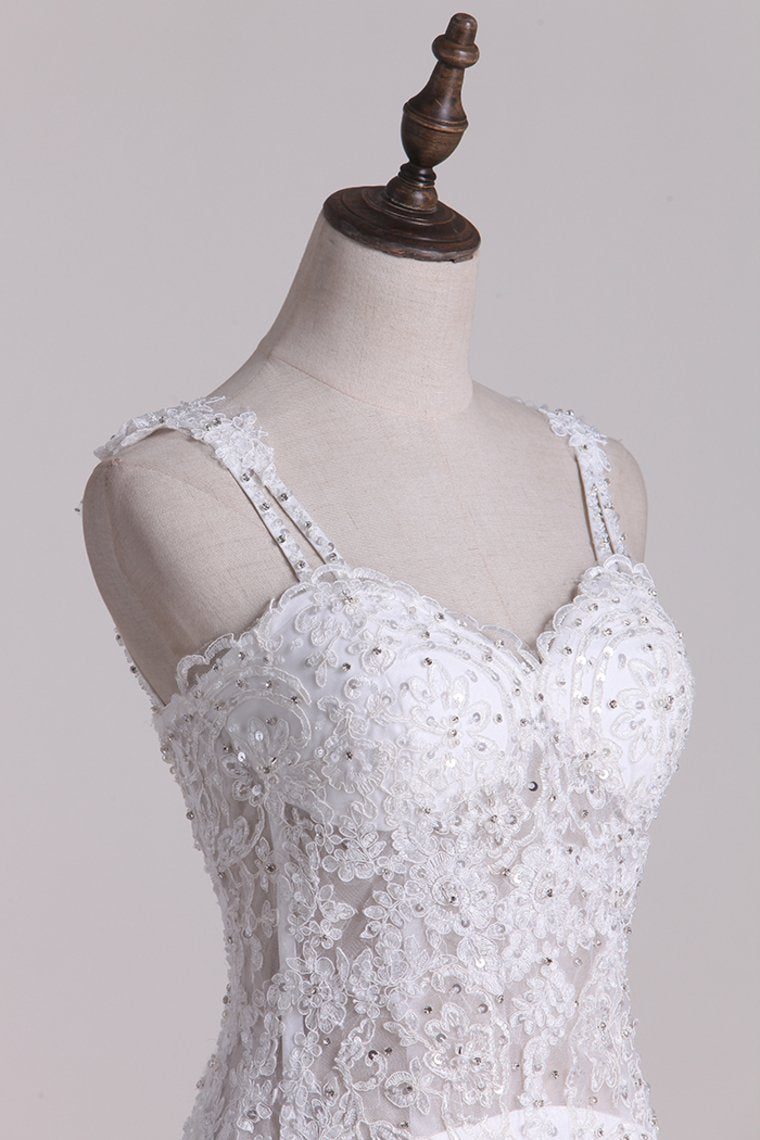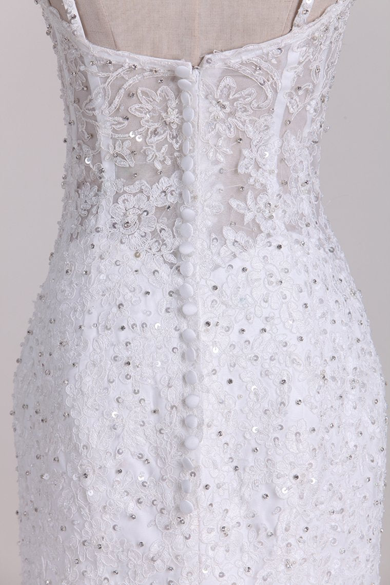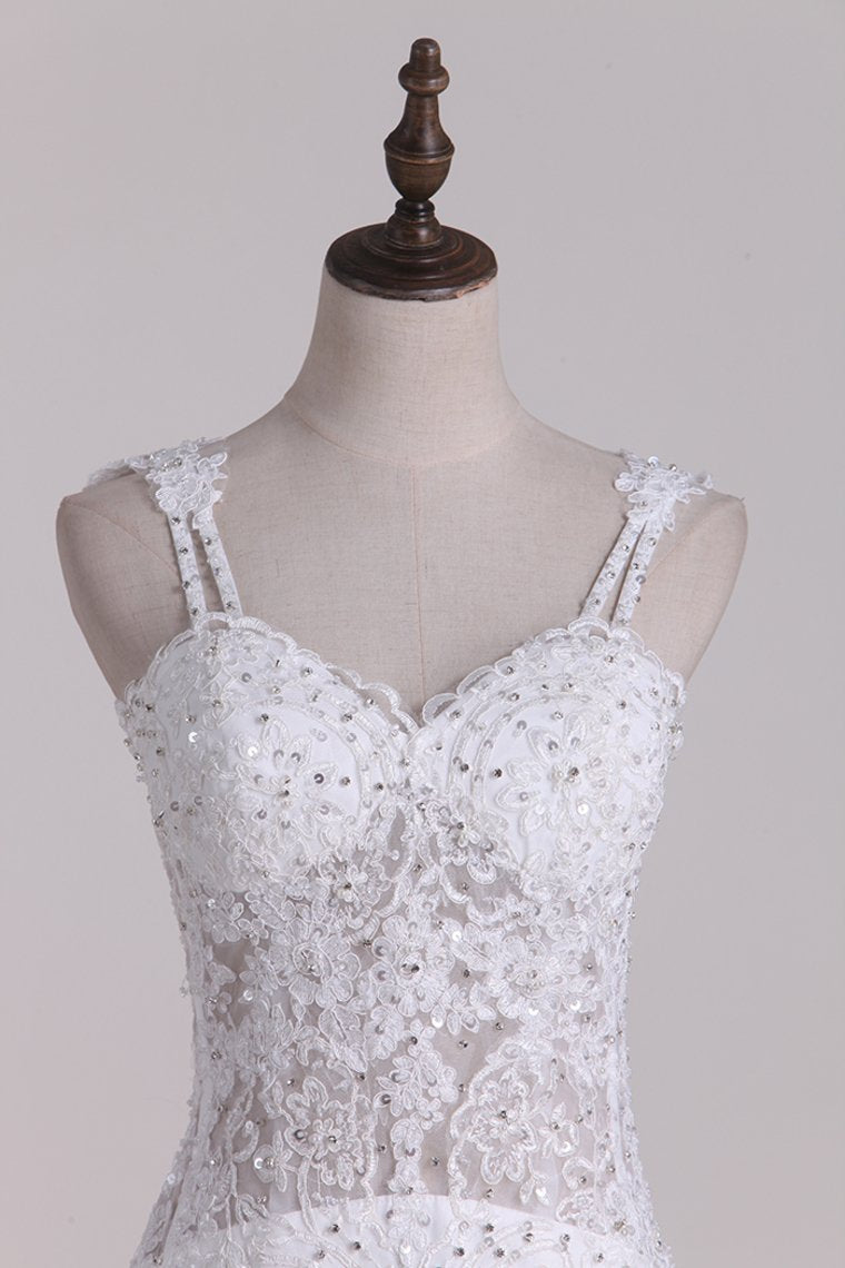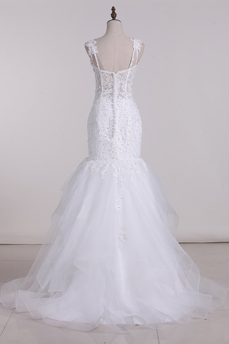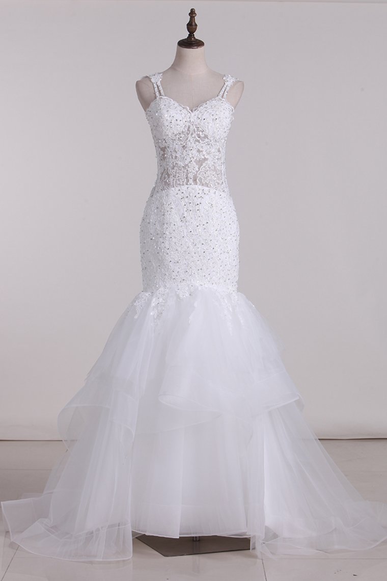 2024 New Arrival Spaghetti Straps Mermaid Wedding Dresses Tulle With Applique