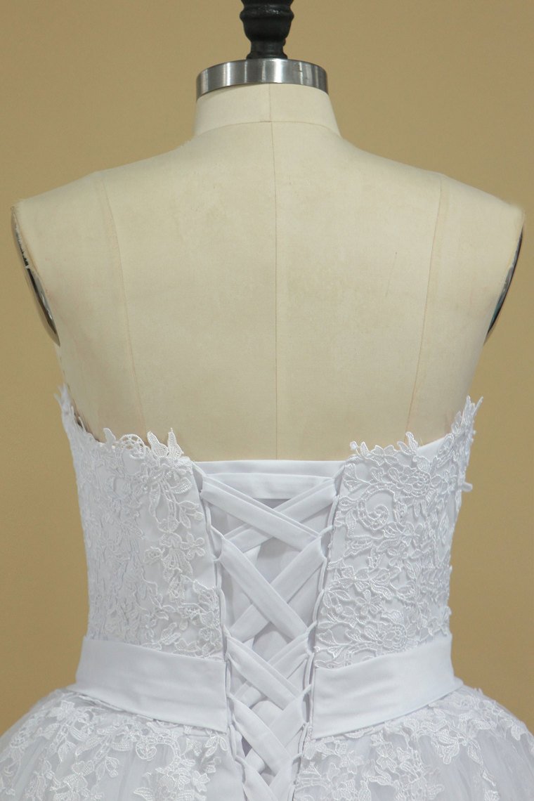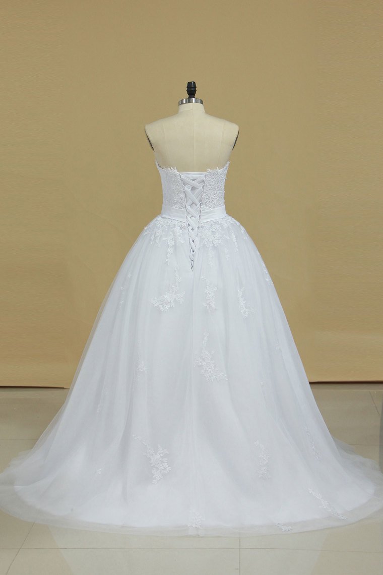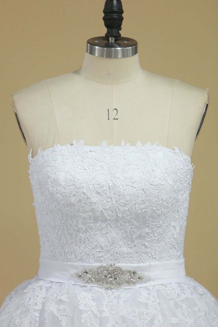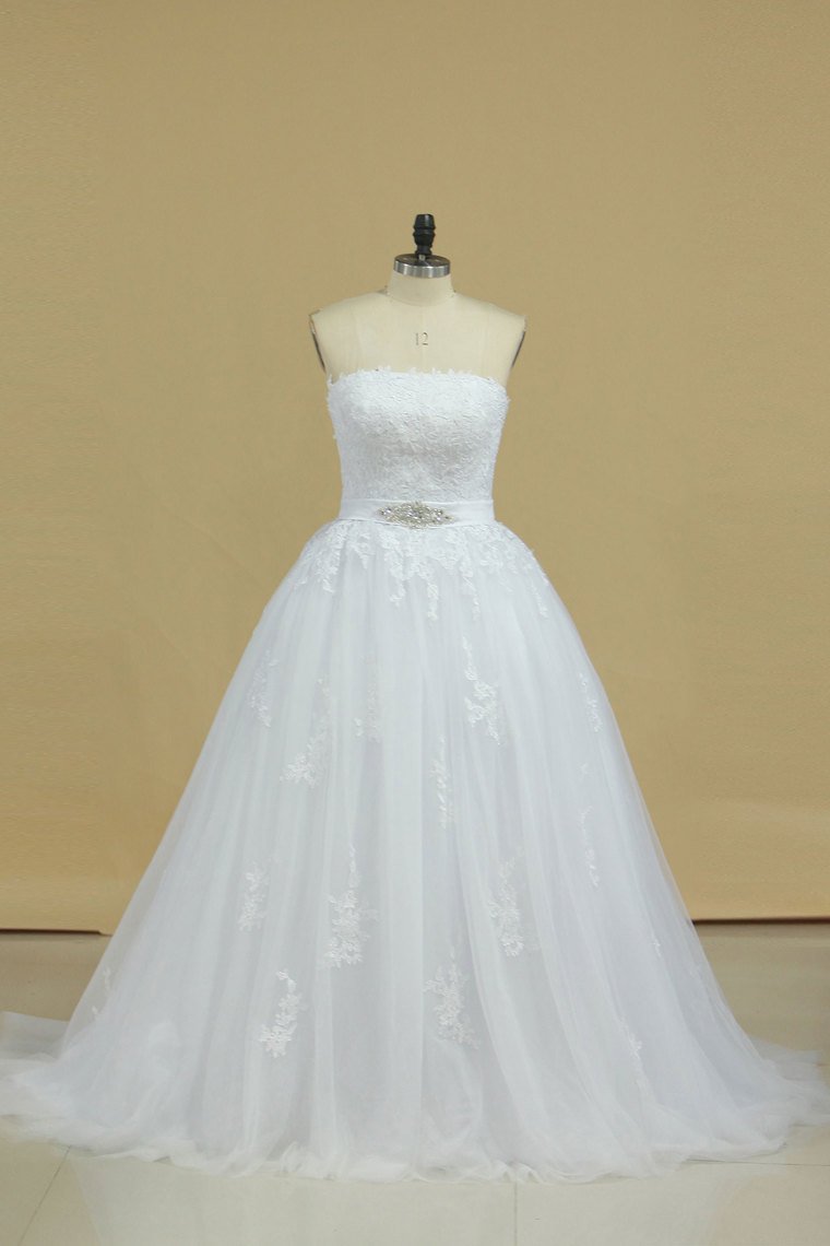 2024 New Arrival Strapless With Applique And Sash Tulle Court Train Wedding Dresses