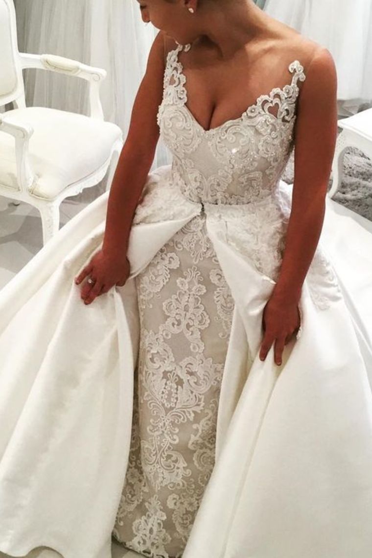 2024 New Arrival Straps Wedding Dresse Sheath With Applique Detachable Satin Train