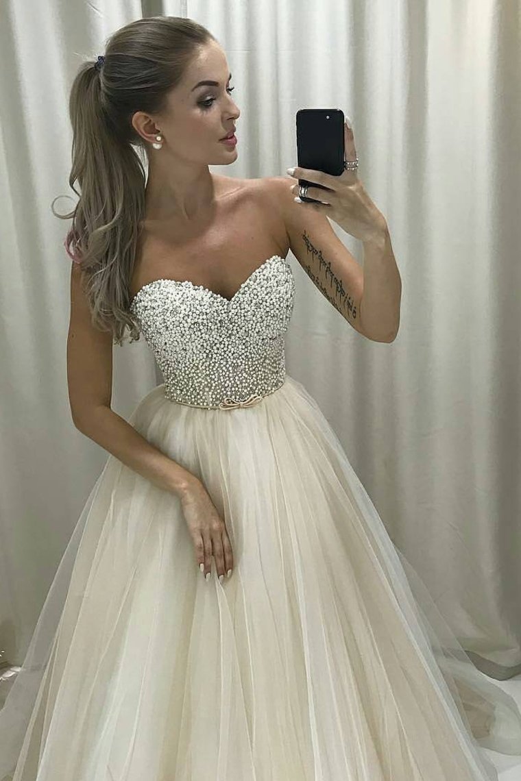 2024 New Arrival Sweetheart A Line Tulle Wedding Dresses With Beading