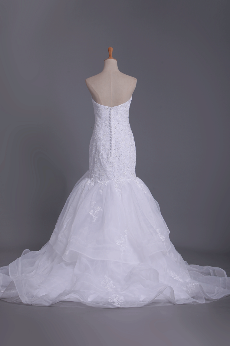 2024 New Arrival Sweetheart Mermaid With Applique And Beads Organza Wedding Dresses