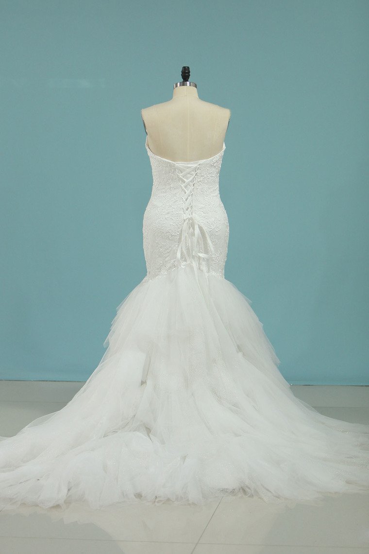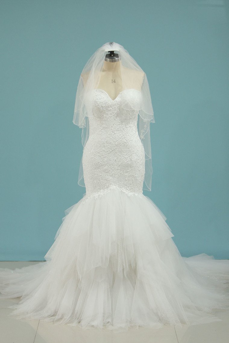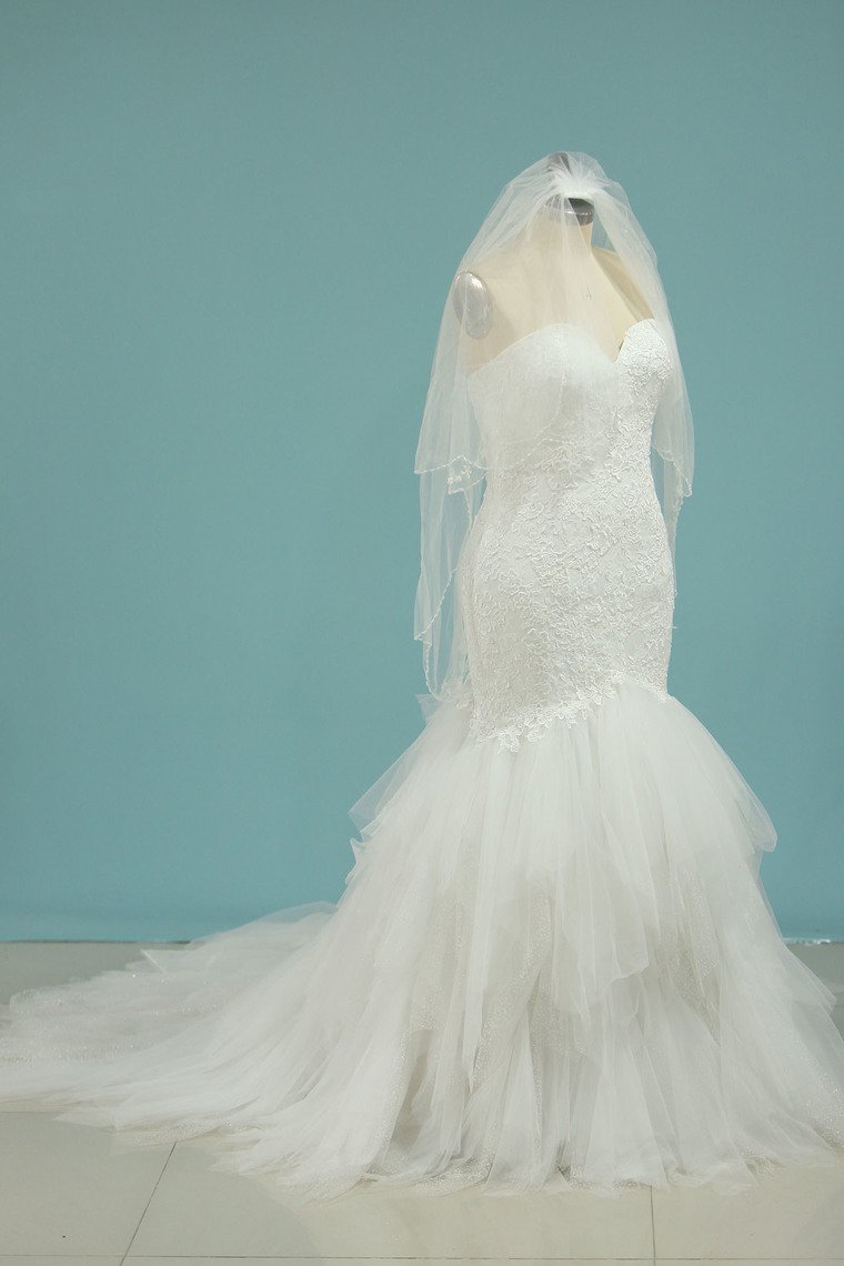 2024 New Arrival Sweetheart Tulle With Applique Mermaid Wedding Dresses