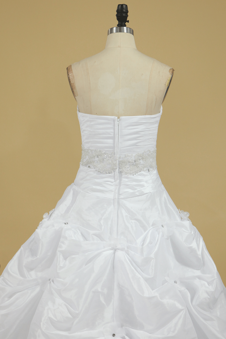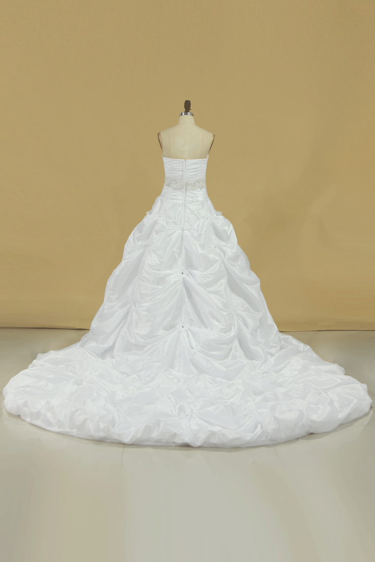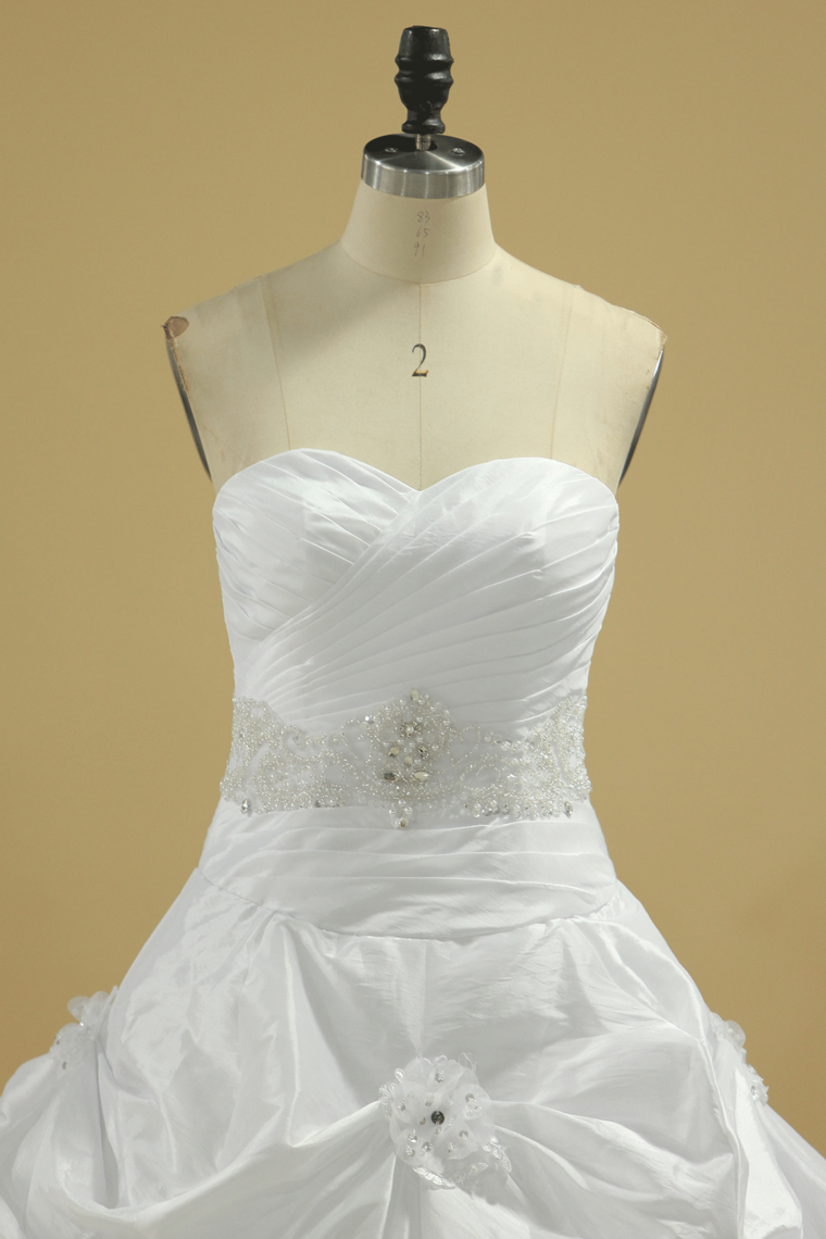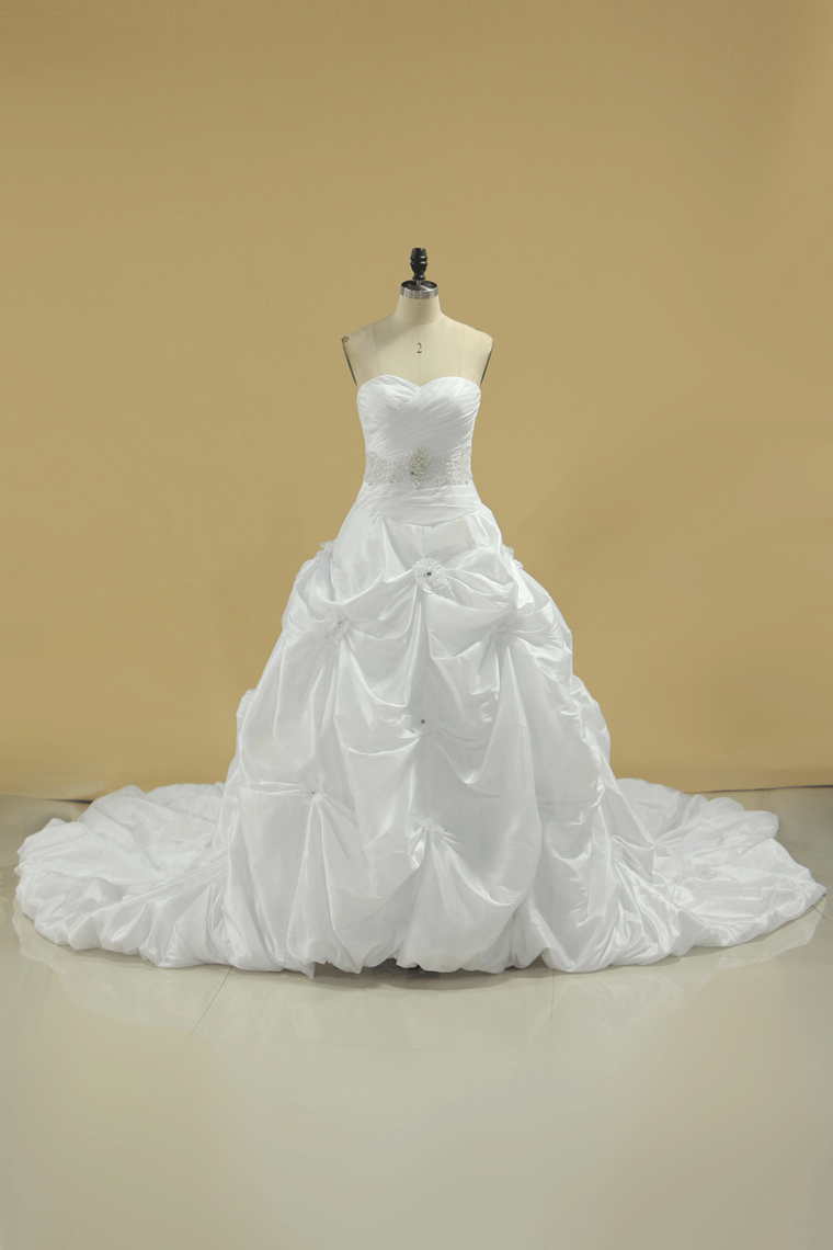2024 New Arrival Sweetheart Wedding Dresses With Ruffles And Beads Chapel Train Taffeta
