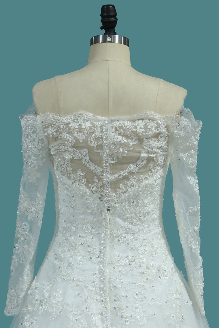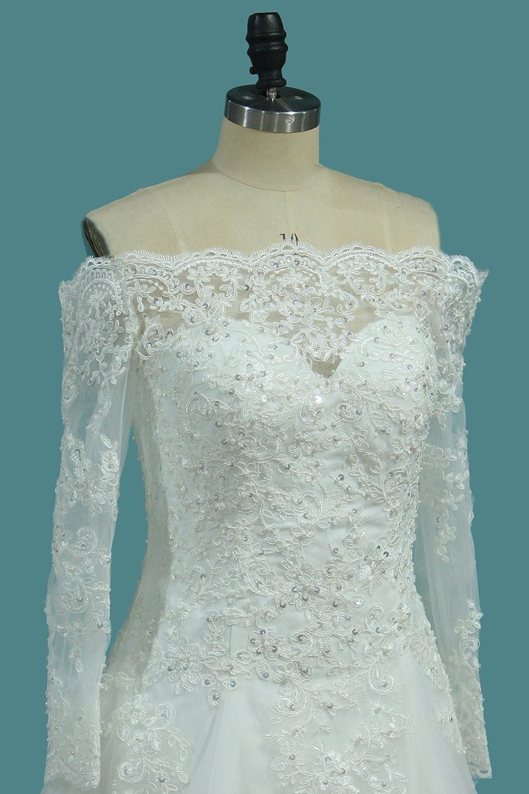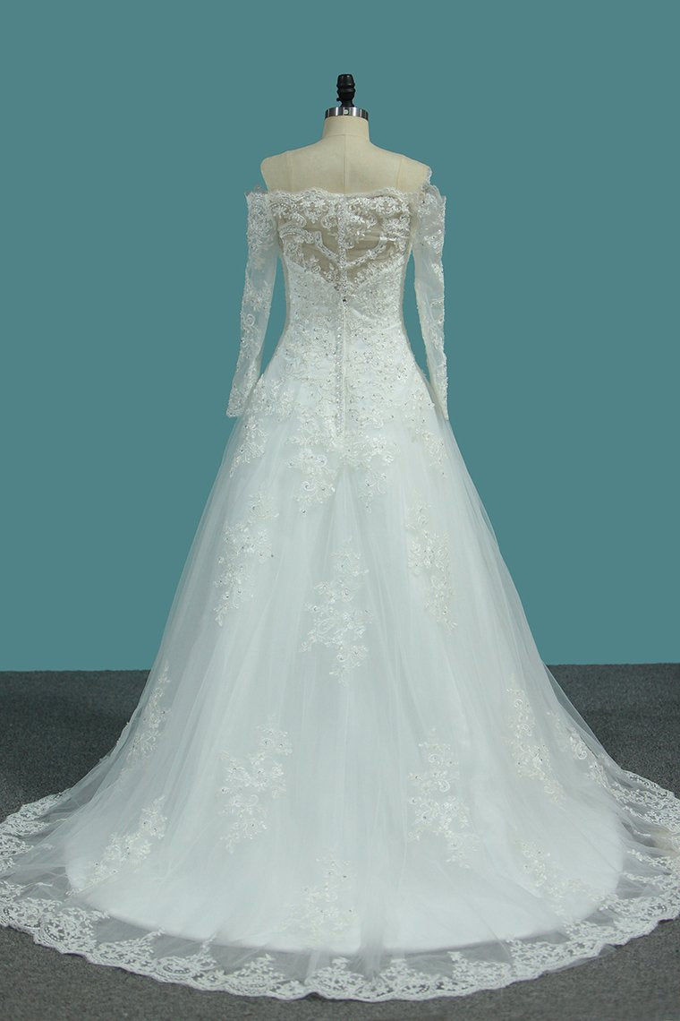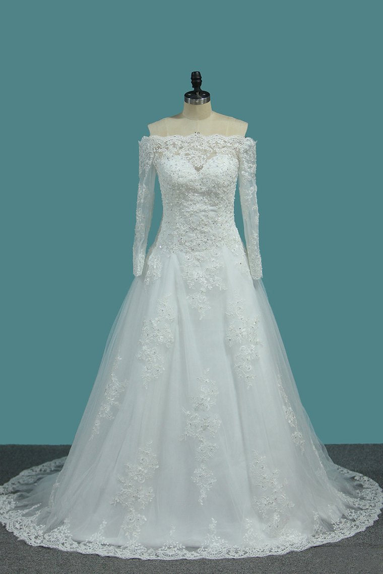 2024 New Arrival Tulle Long Sleeves Boat Neck A Line Wedding Dresses