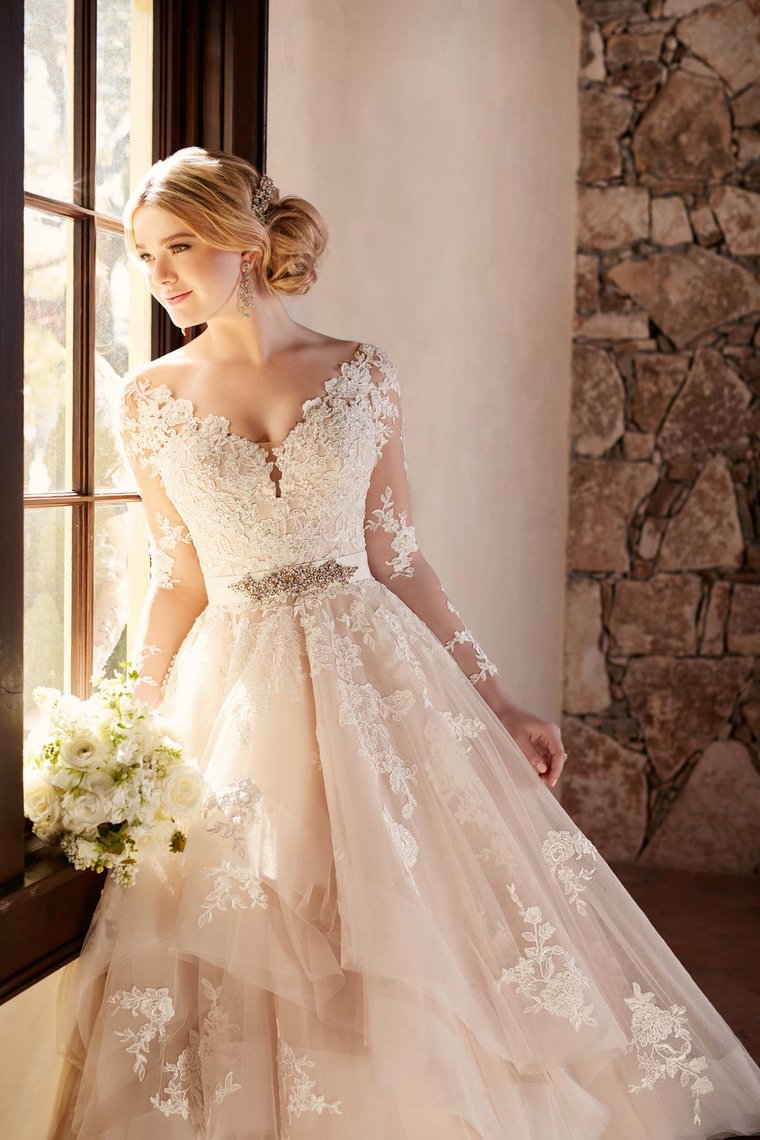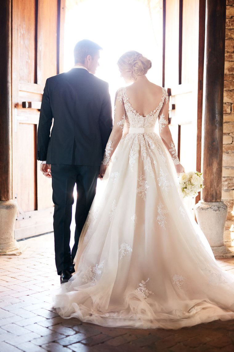 2024 New Arrival V Neck Long Sleeves Tulle With Applique Wedding Dresses A Line