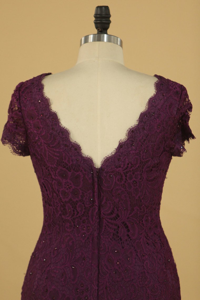 2024 New Arrival V Neck Short Sleeves Mermaid Lace Mother Of The Bride Dresses
