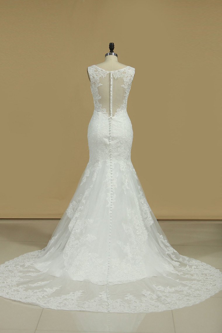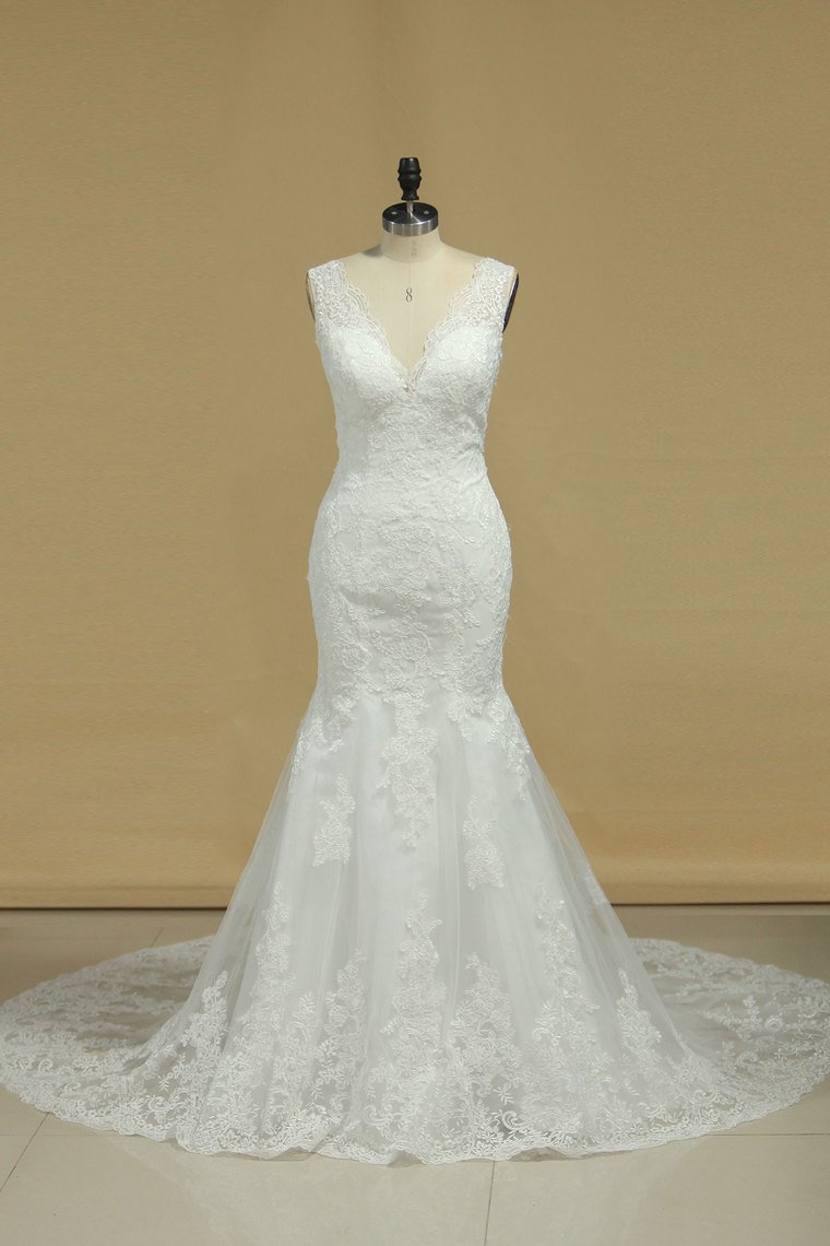 2024 New Arrival V Neck Wedding Dresses Mermaid With Applique Tulle