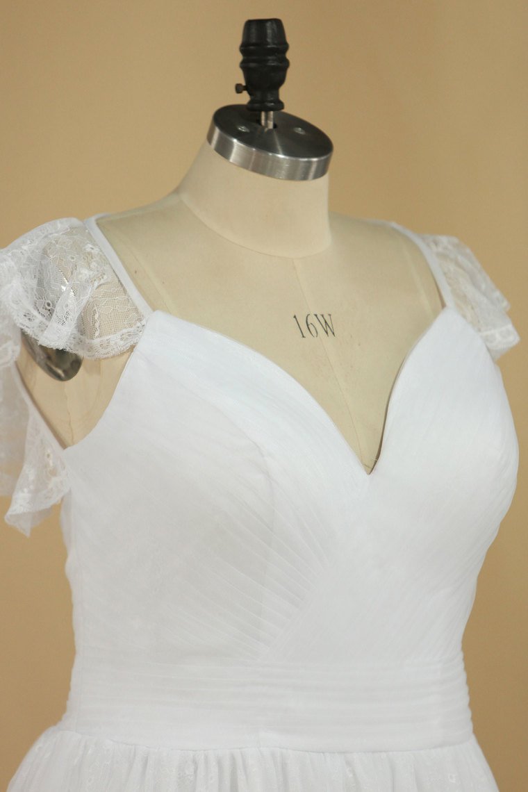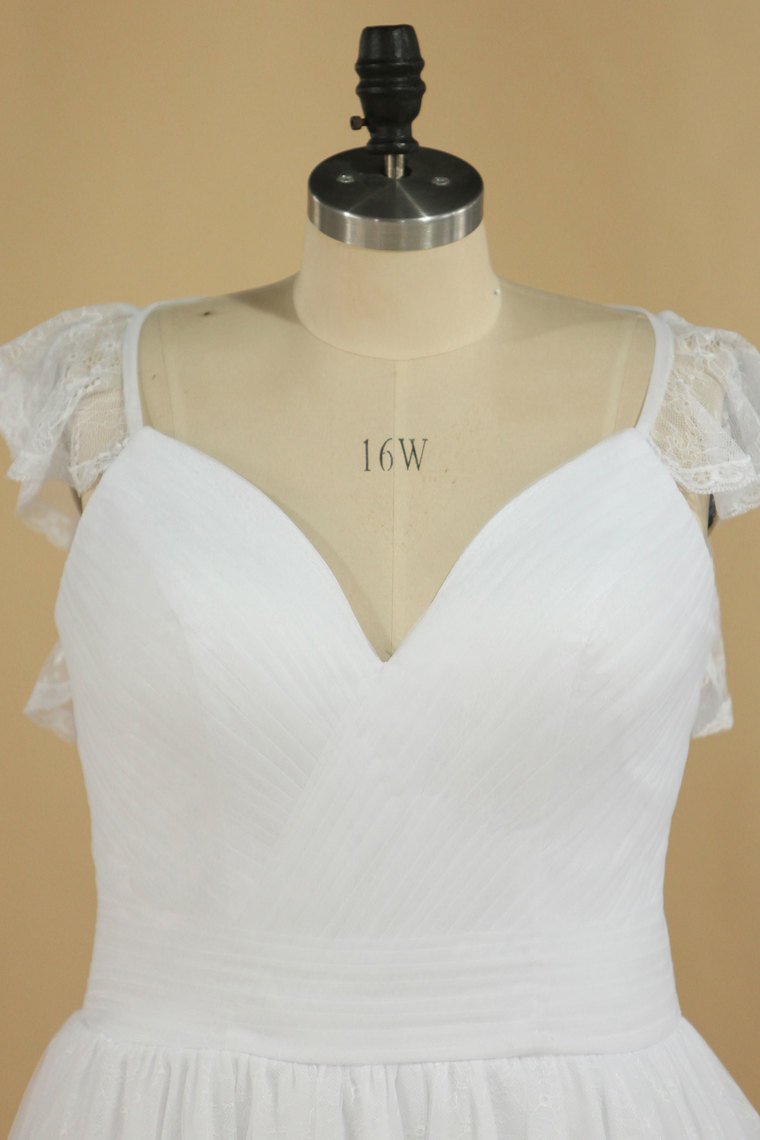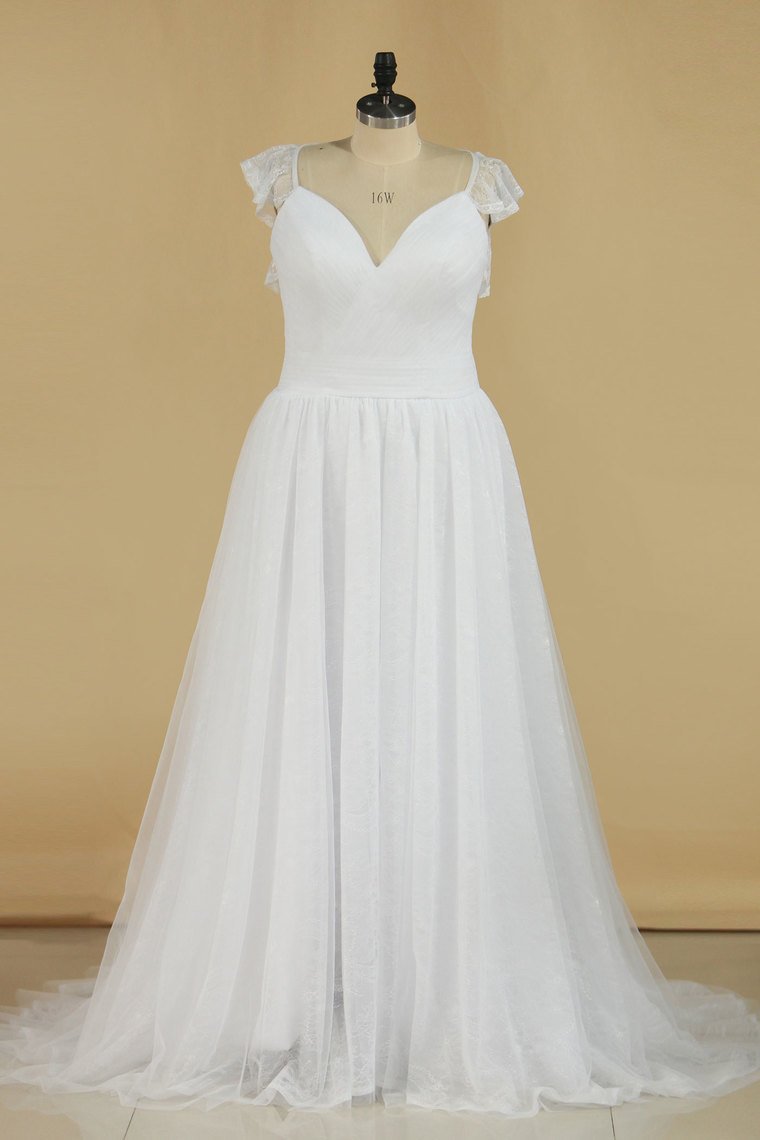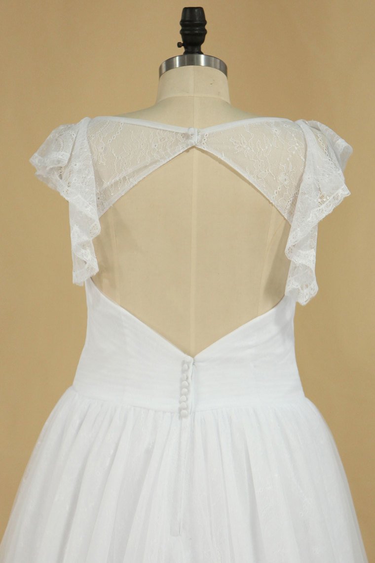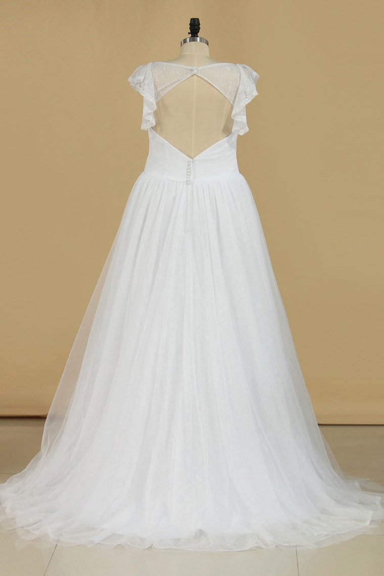 2024 New Arrival V Neck Wedding Dresses Ruffled Bodice A Line Tulle & Lace Open Back