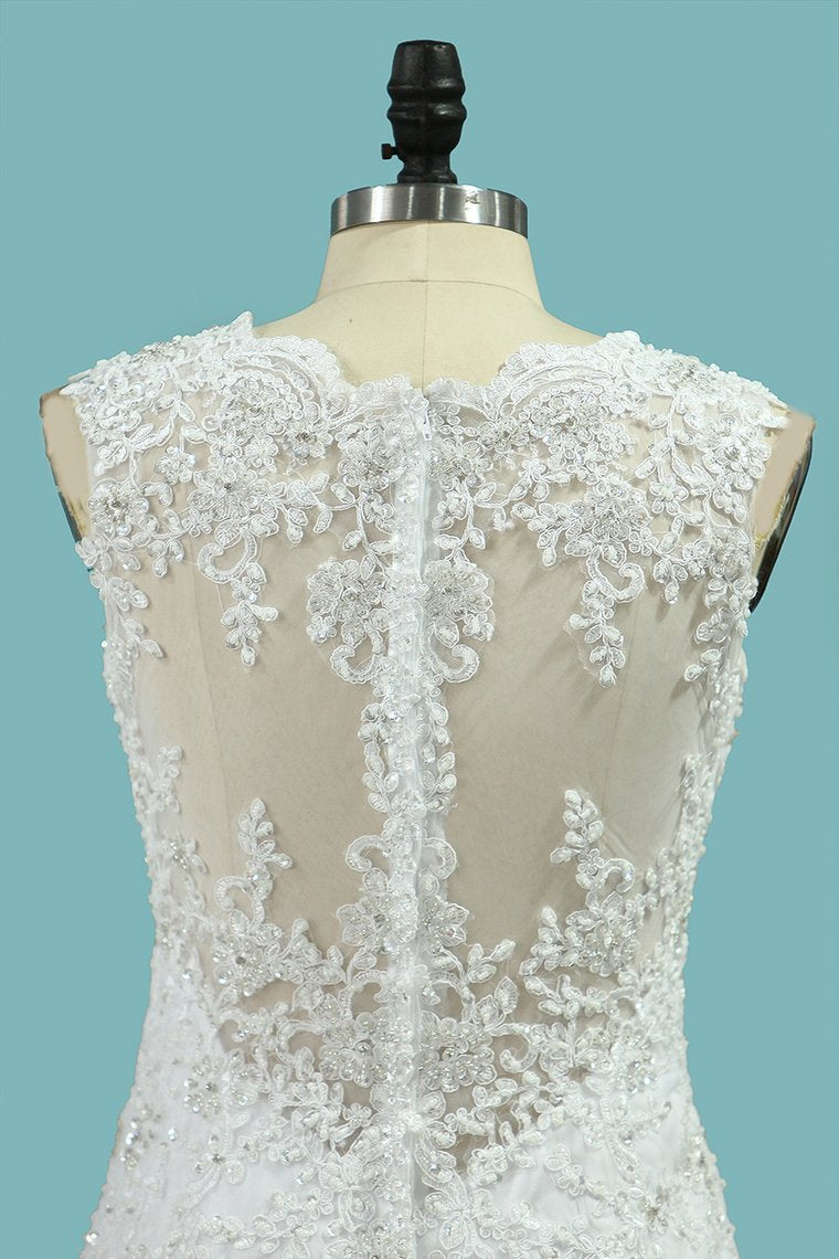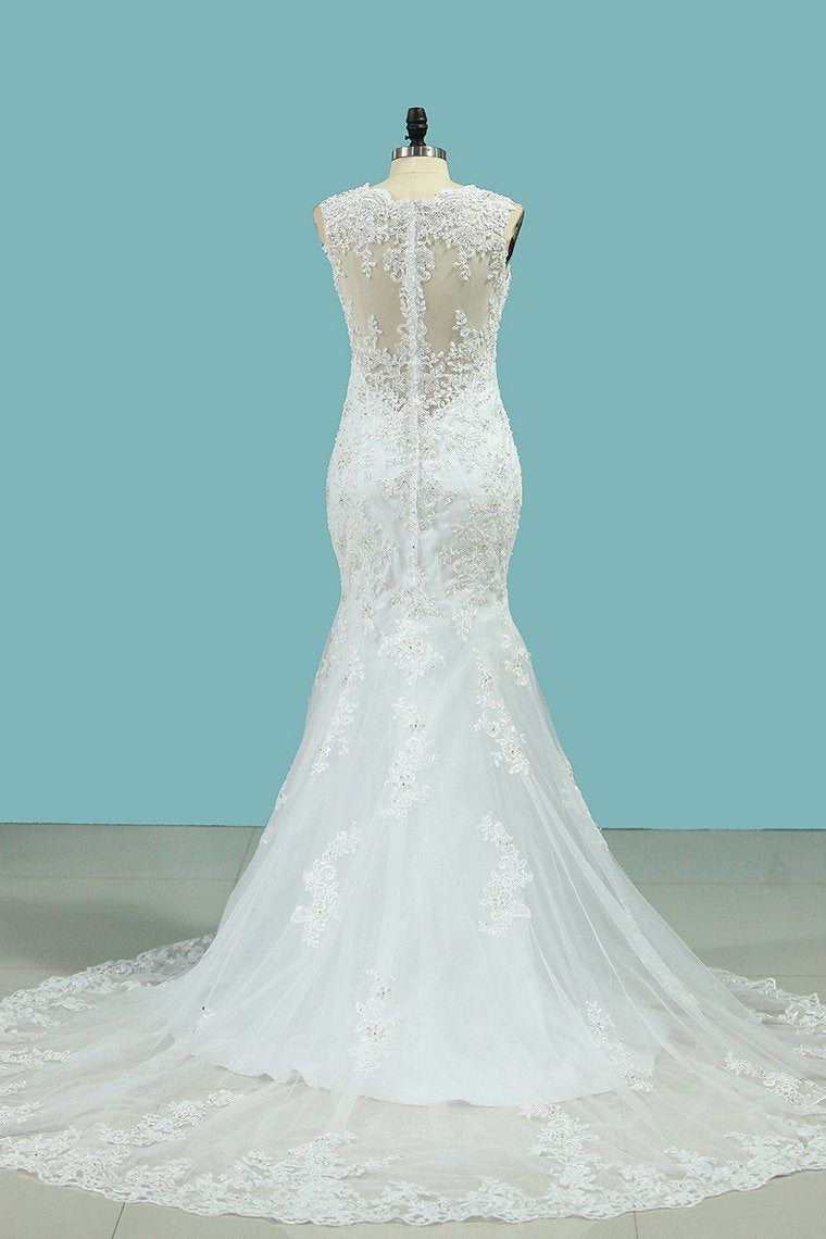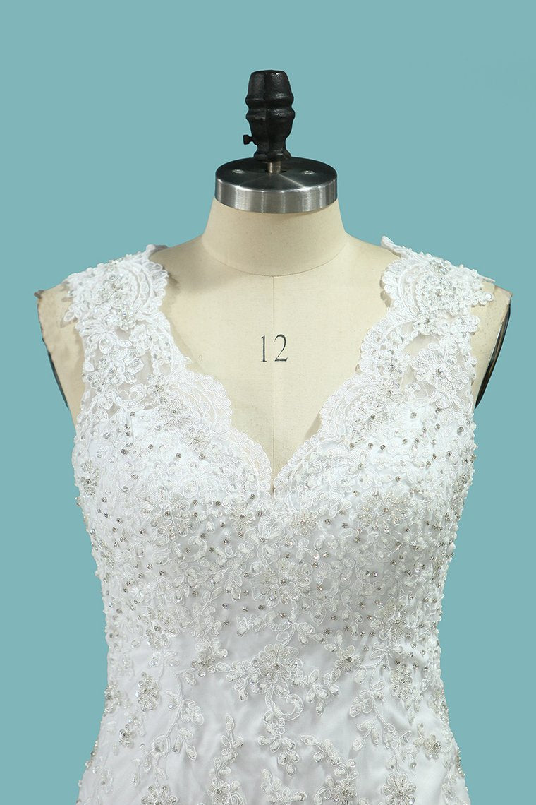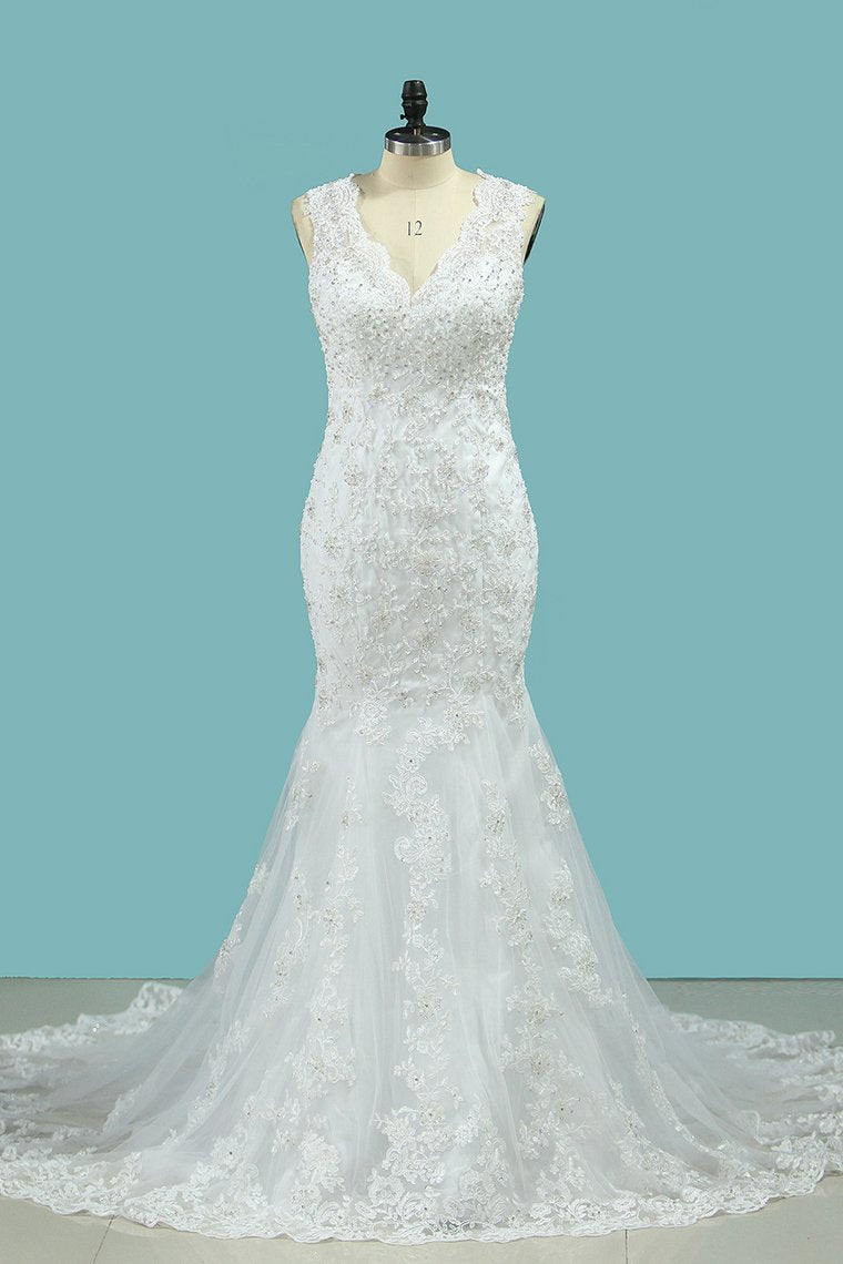 2024 New Arrival V Neck Wedding Dresses Tulle Mermaid With Applique And Beads