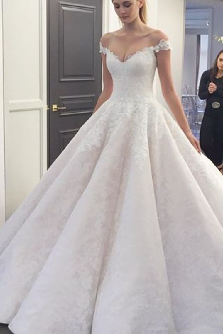 2024 New Arrival Wedding Dresses A-Line Tulle With Appliques Off The Shoulder