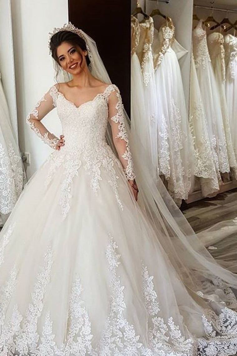 2024 New Arrival Wedding Dresses A-Line V-Neck With Appliques Long Sleeves