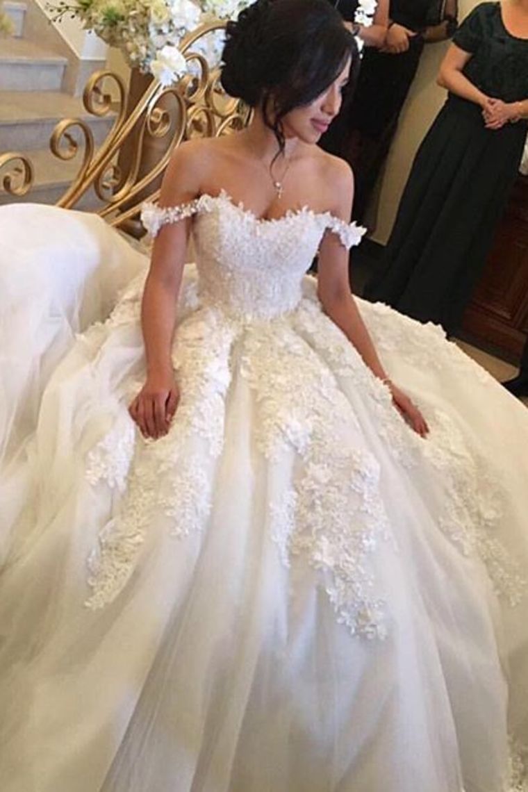 2024 New Arrival Wedding Dresses Ball Gown Tulle With Appliques Off The Shoulder