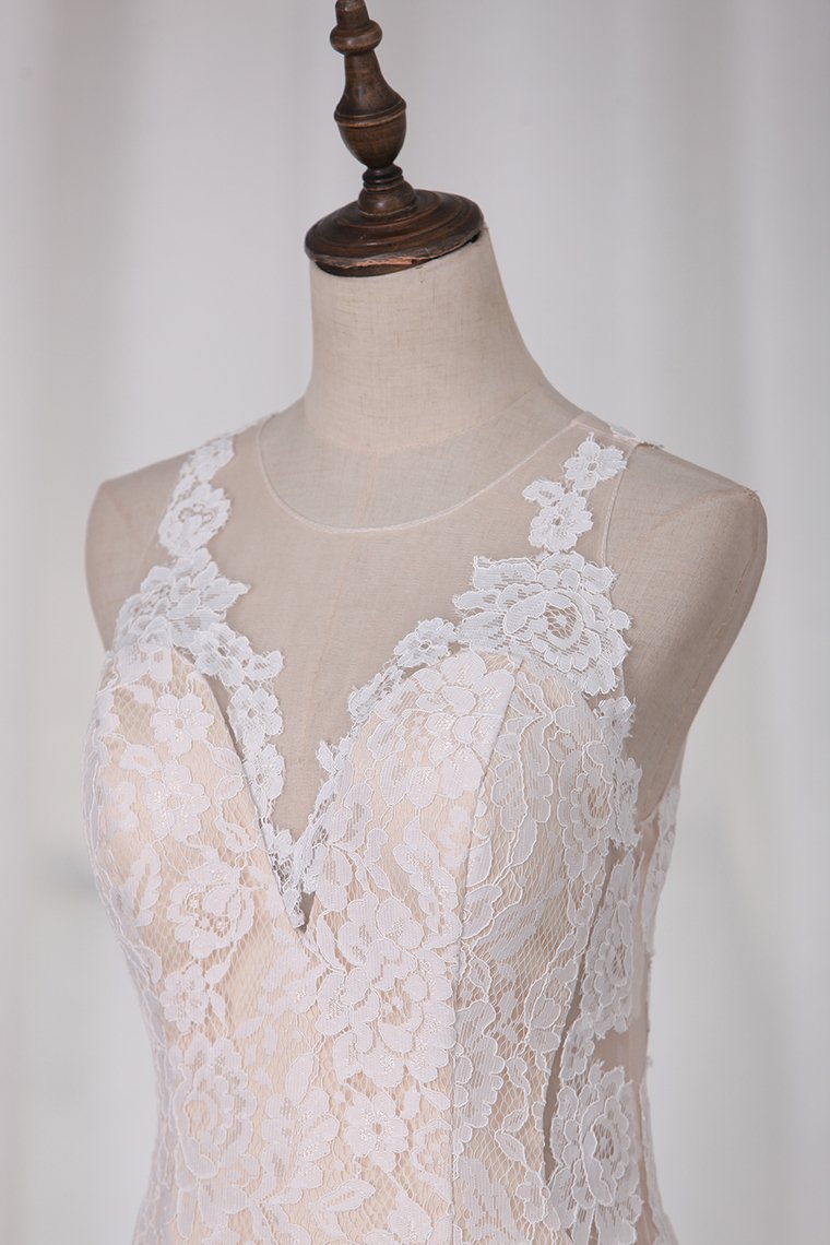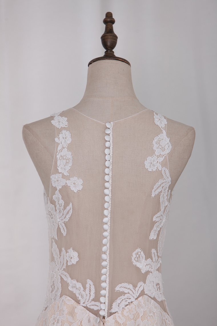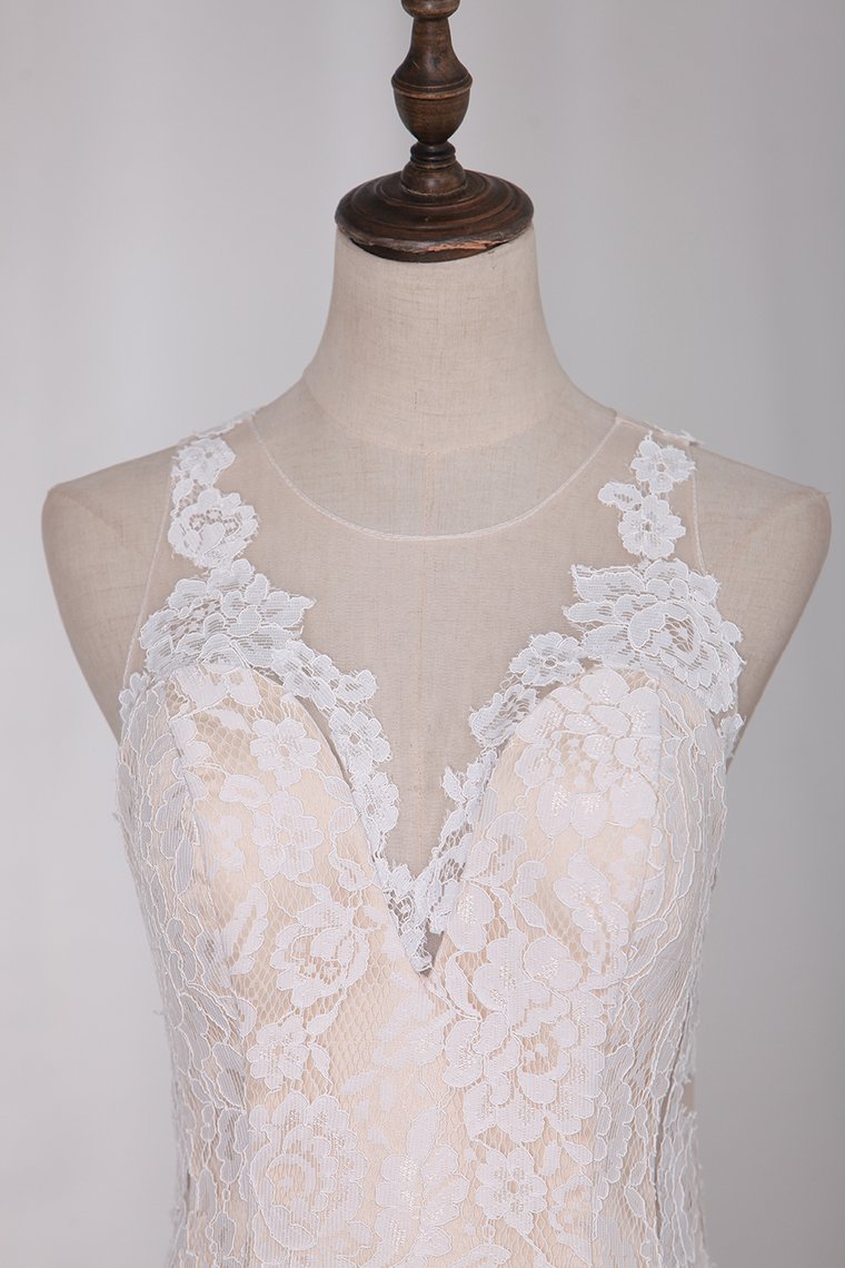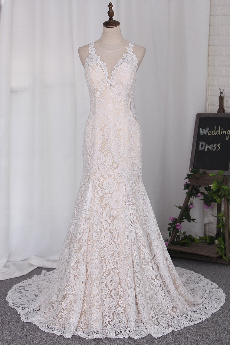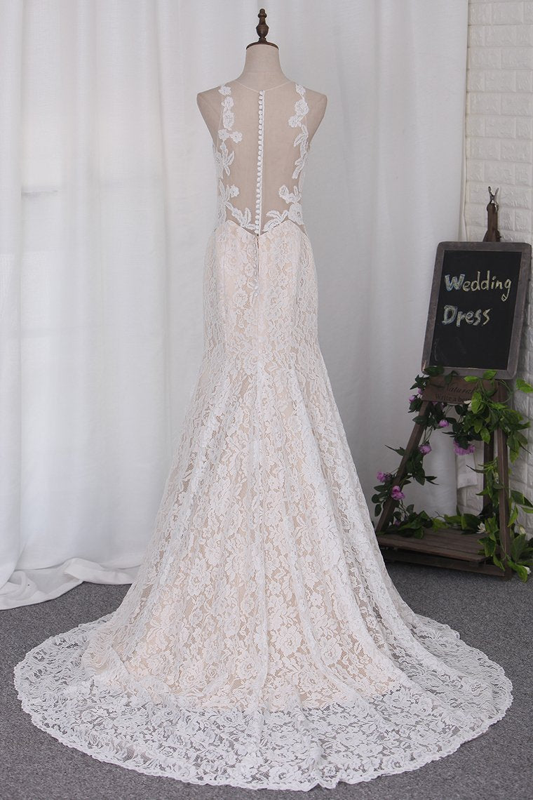 2024 New Arrival Wedding Dresses Mermaid Scoop Lace With Applique Court Train