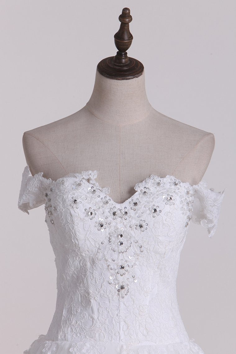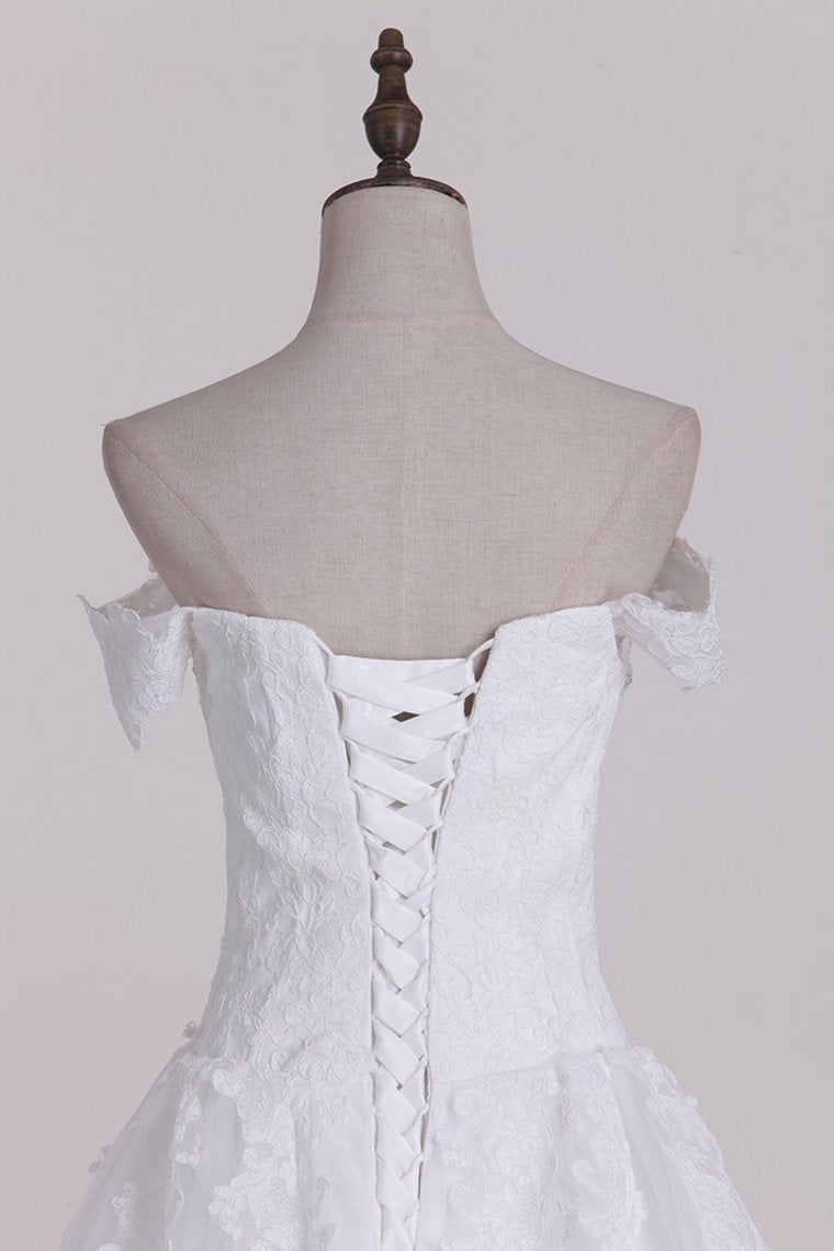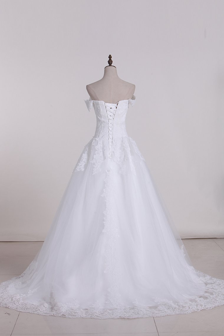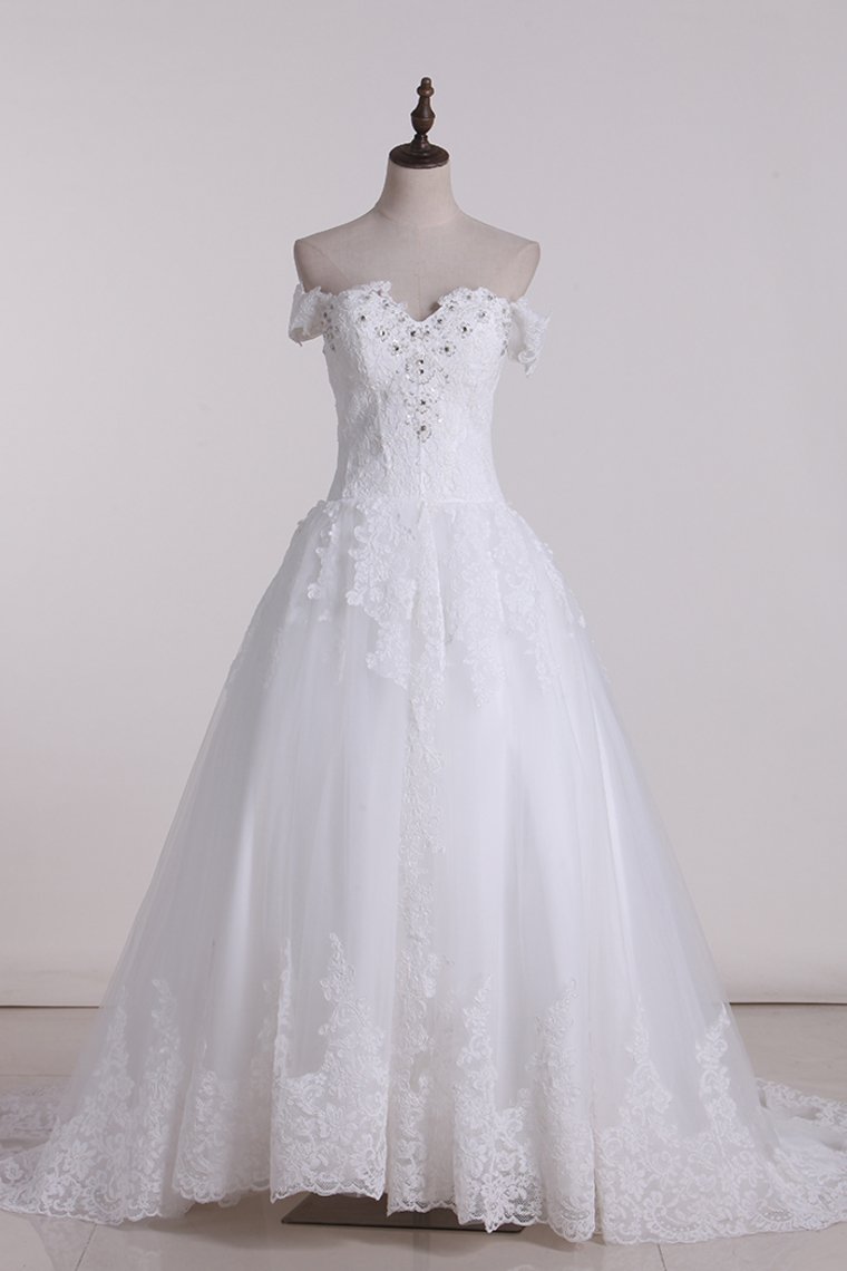 2024 New Arrival Wedding Dresses Off The Shoulder Tulle With Applique And Beads A Line
