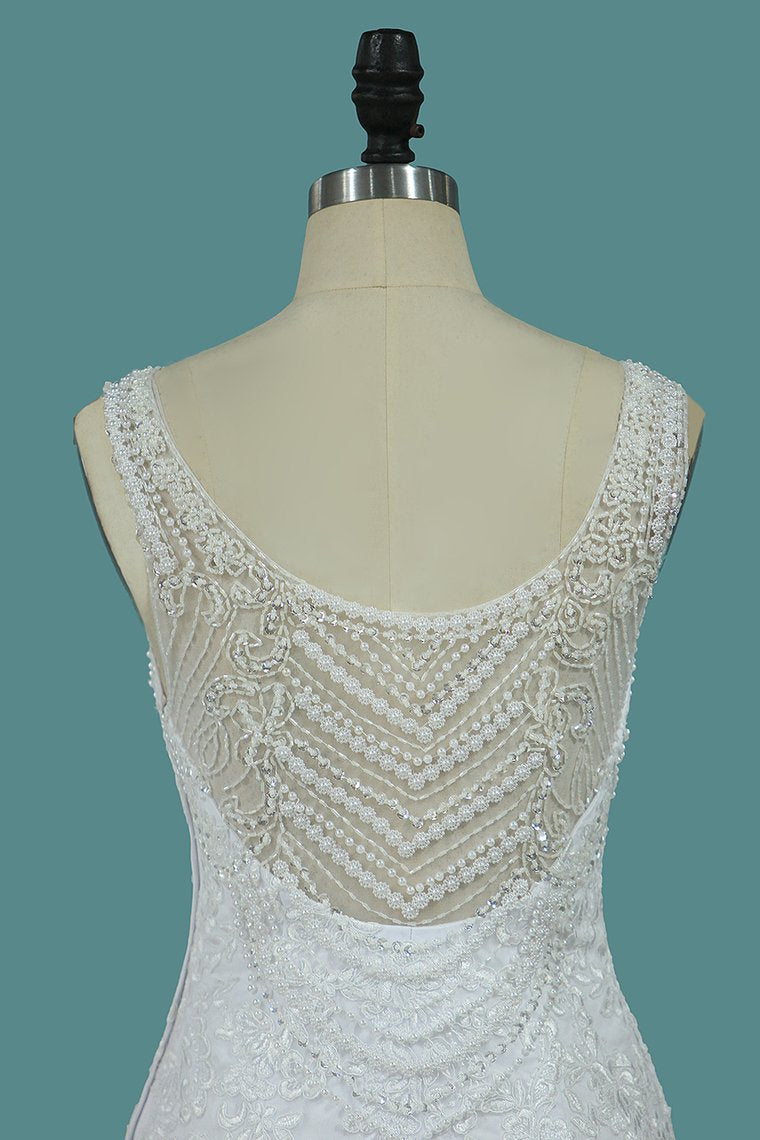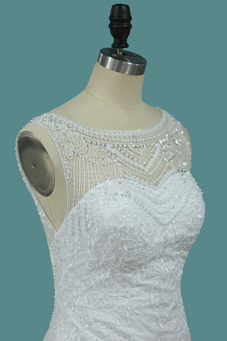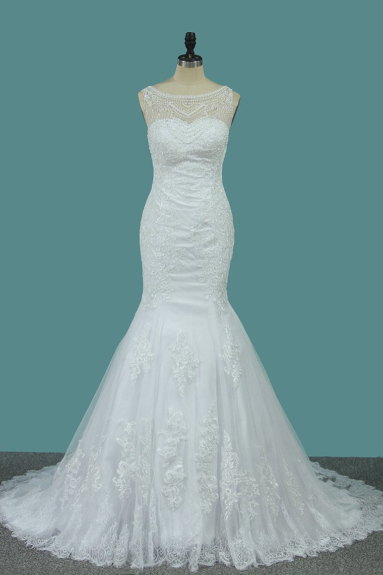 2024 New Arrival Wedding Dresses Scoop Mermaid Tulle With Applique And Beads
