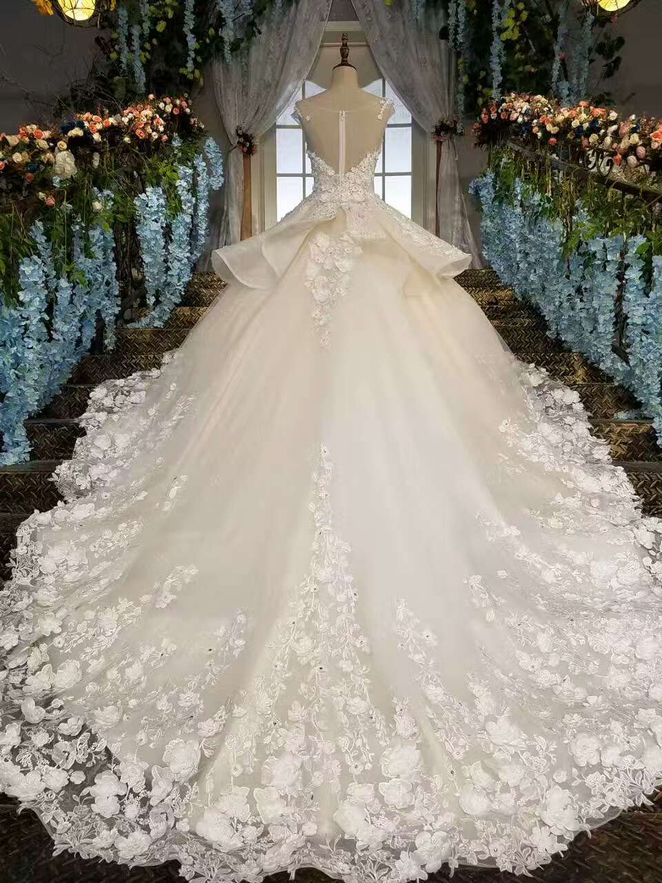 2024 New Arrival Wedding Dresses Scoop Neck With Appliques And Crystals Lace Up