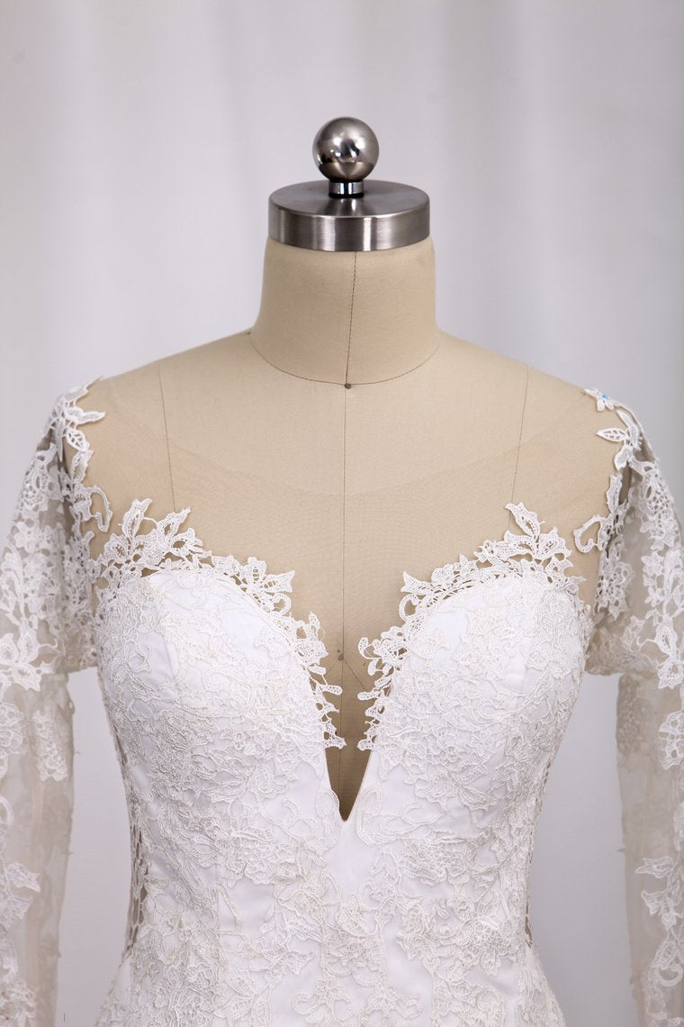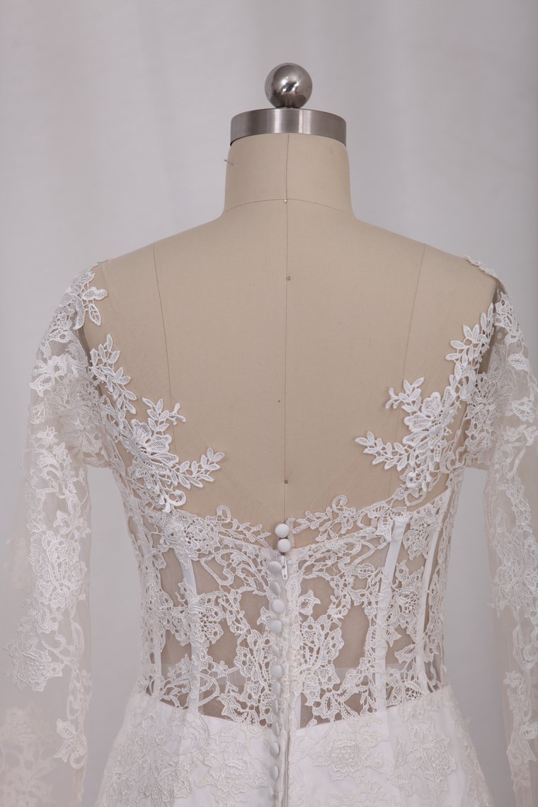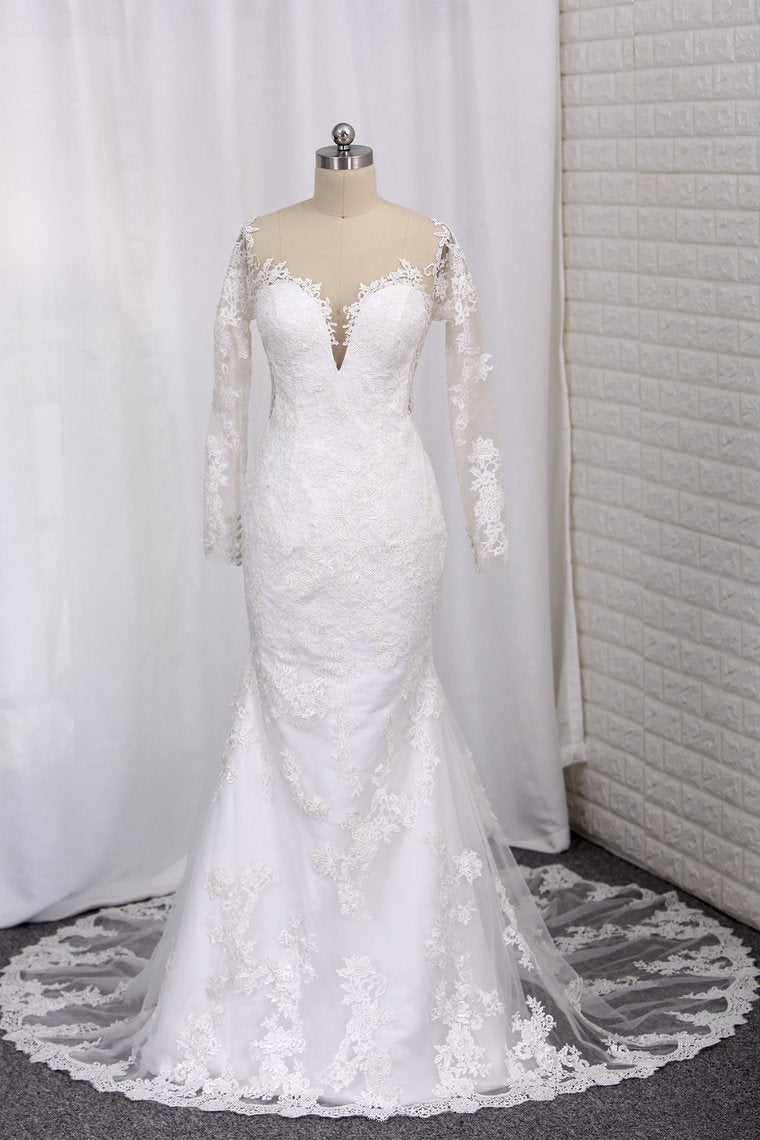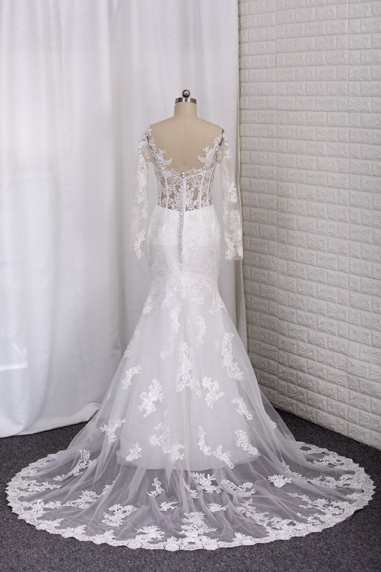 2024 New Arrival Wedding Dresses Tulle Scoop Long Sleeves With Applique Mermaid