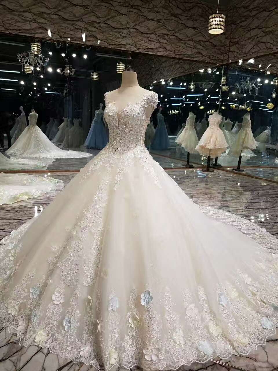 2024 New Arrival Wedding Dresses Tulle Wedding Dresses Scoop Neckline With Beading Handmade Flowers