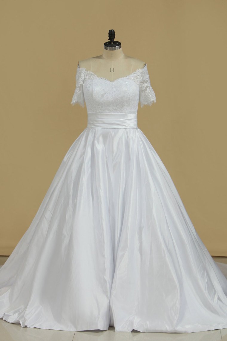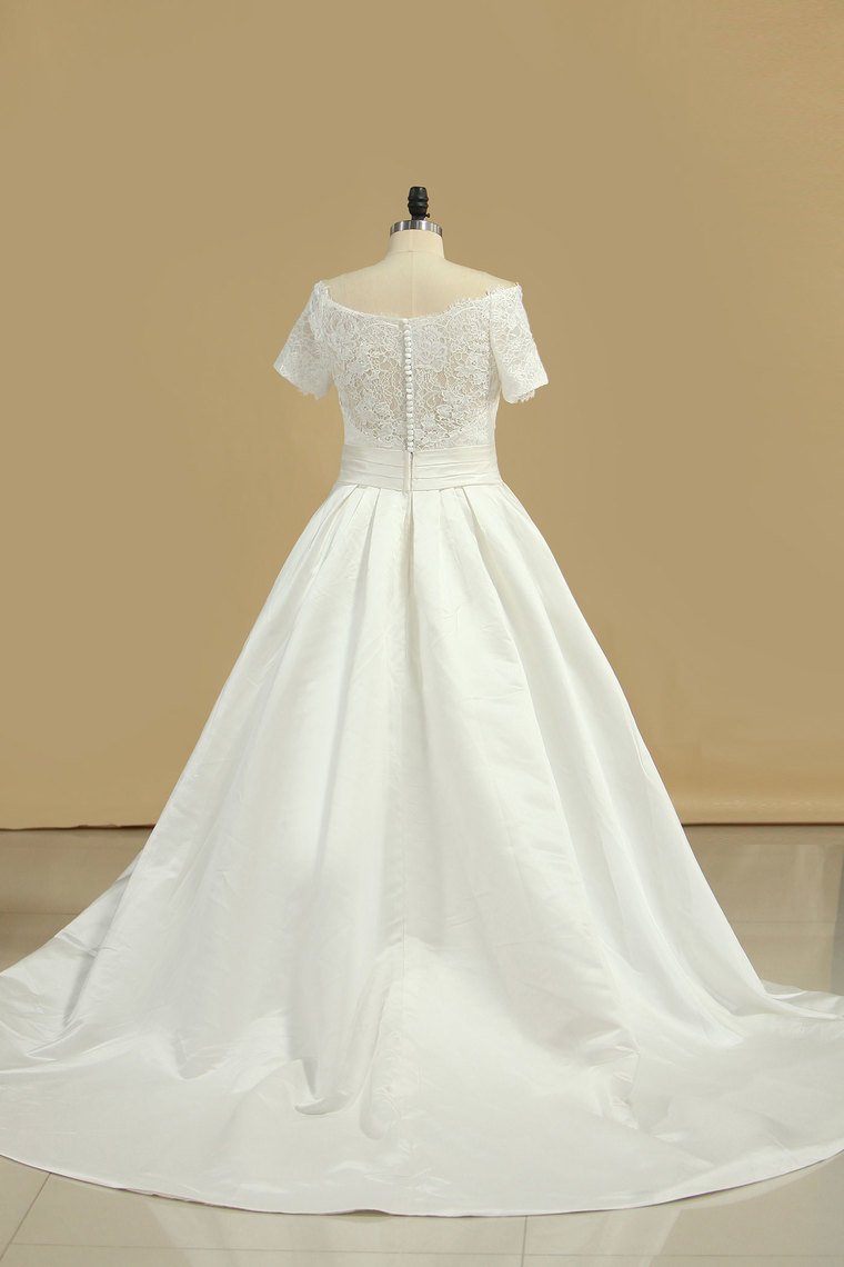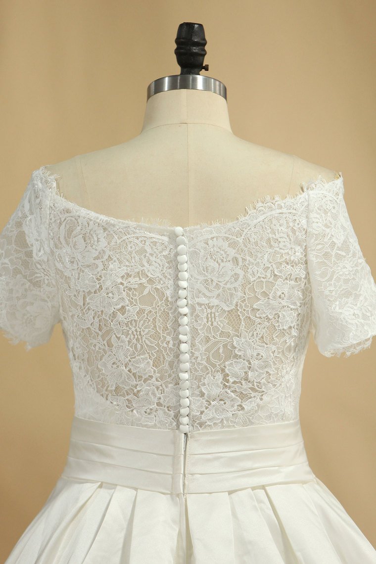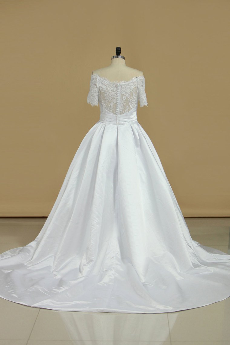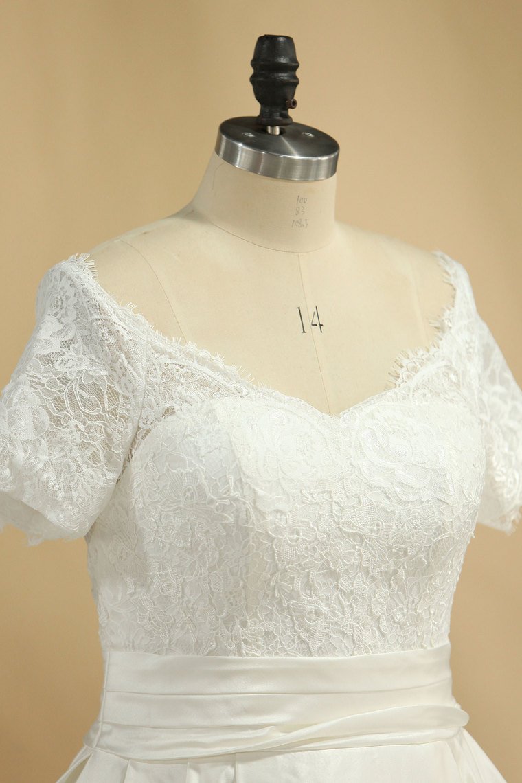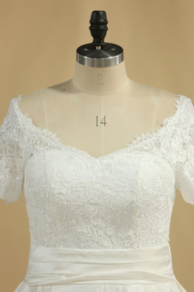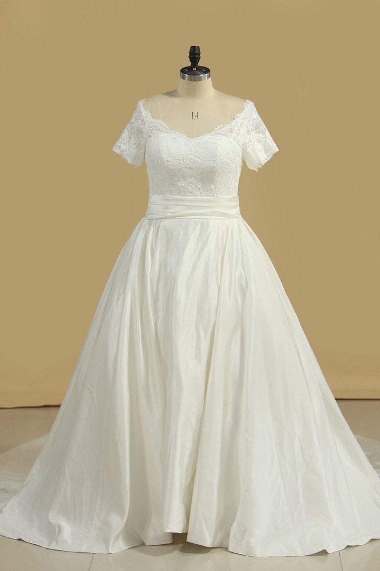 2024 New Arrival Wedding Dresses V Neck Short Sleeves Satin A Line