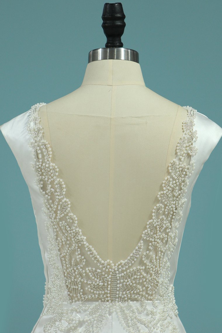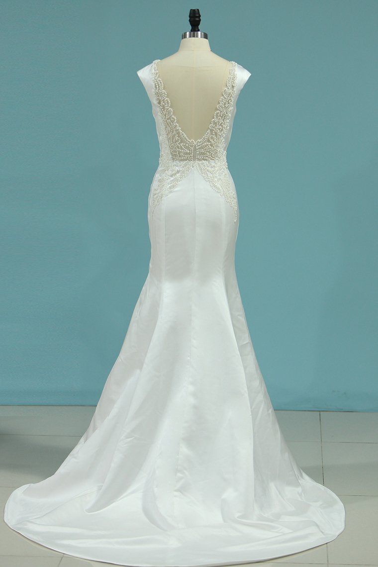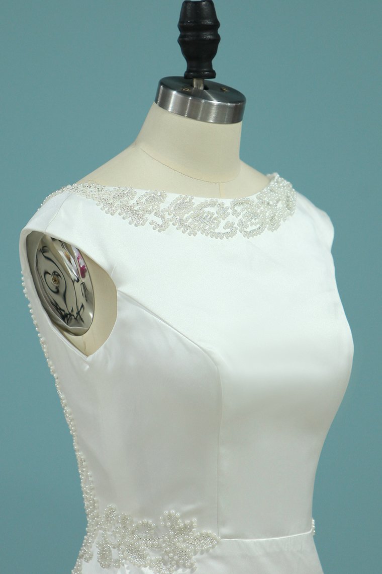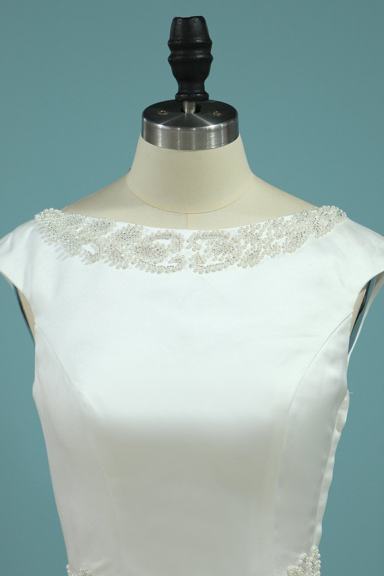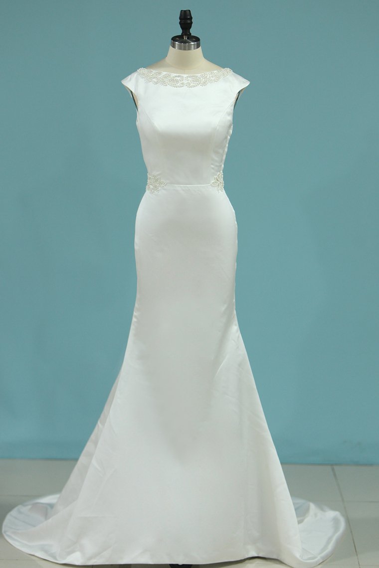 2024 New Bateau Wedding Dresses Mermaid Satin With Beads