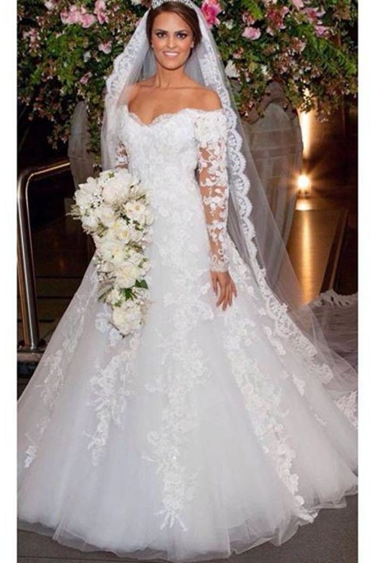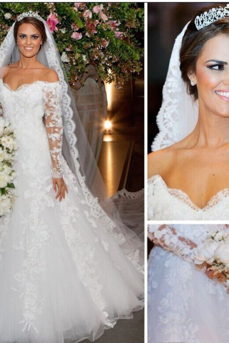 2024 New Style Off The Shoulder A-Line Wedding Dress Long Sleeves