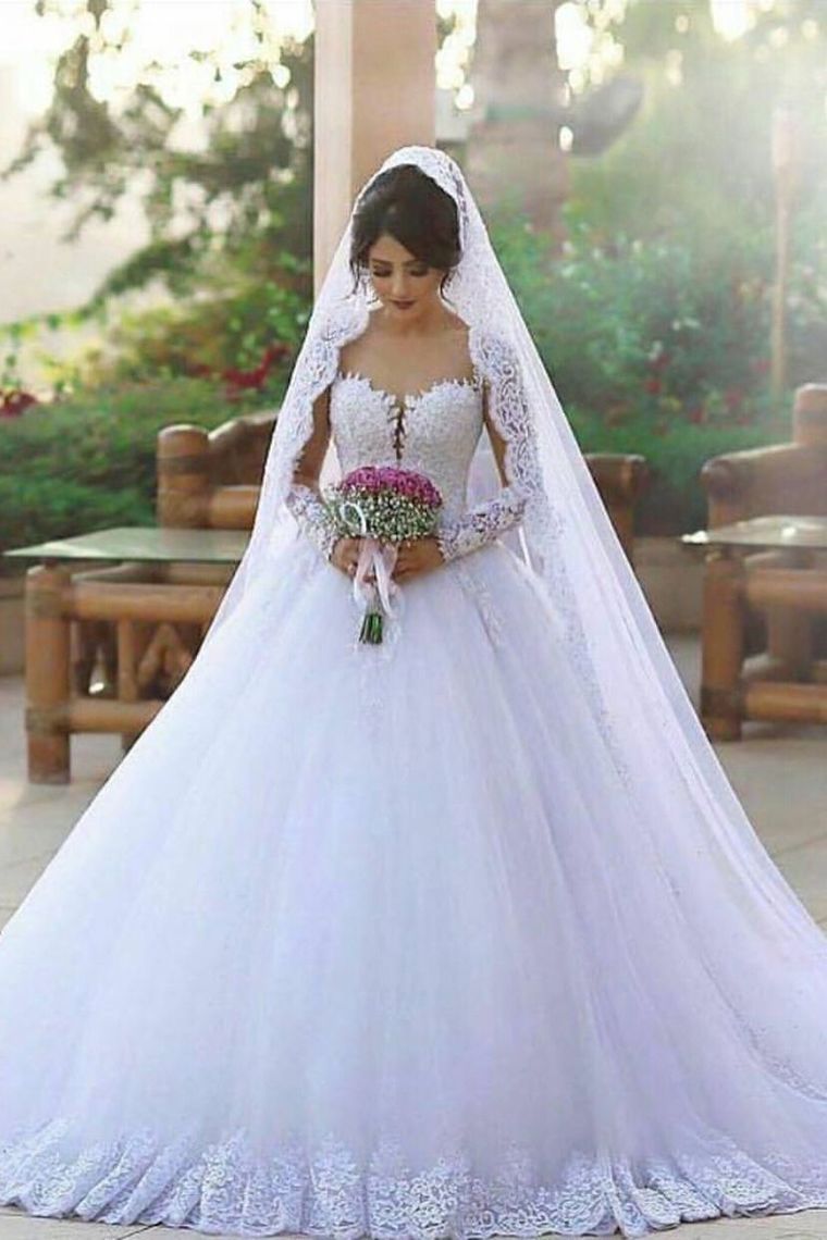 2024 New Wedding Dress A-Line Off The Shoulder Court Train Tulle With Applique Long Sleeves