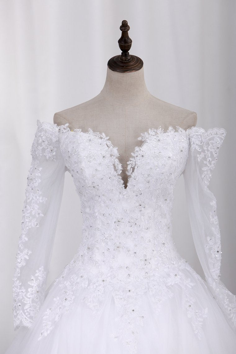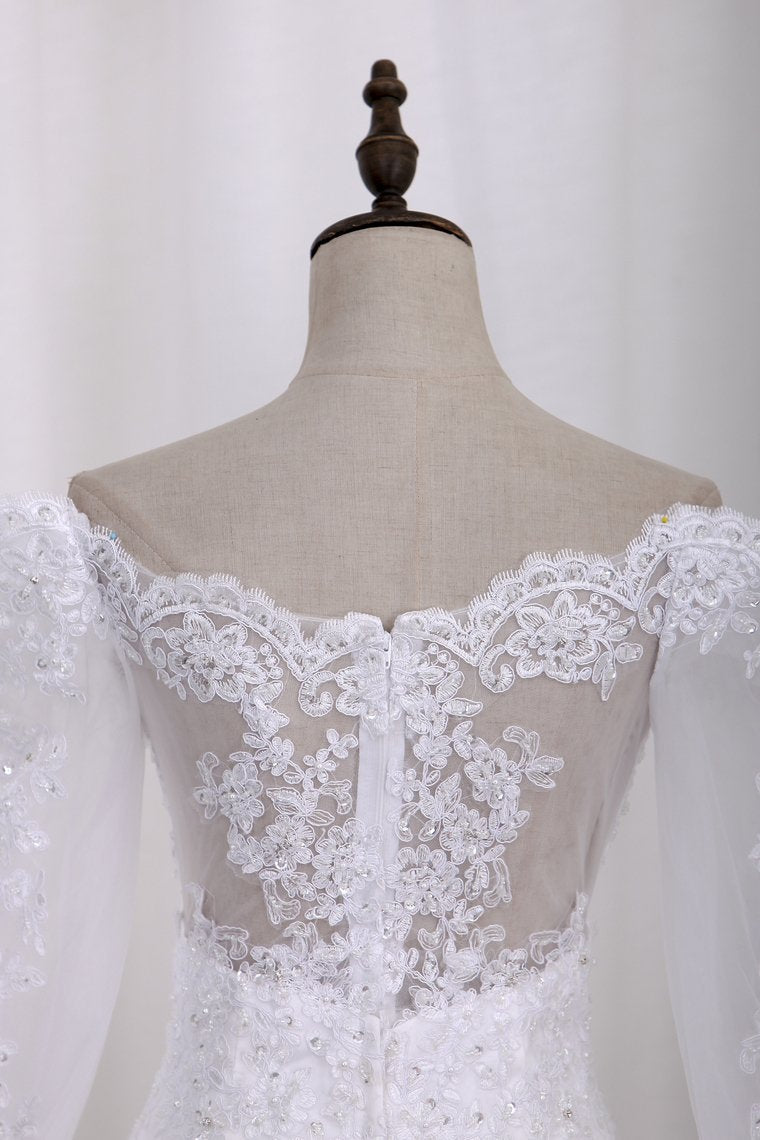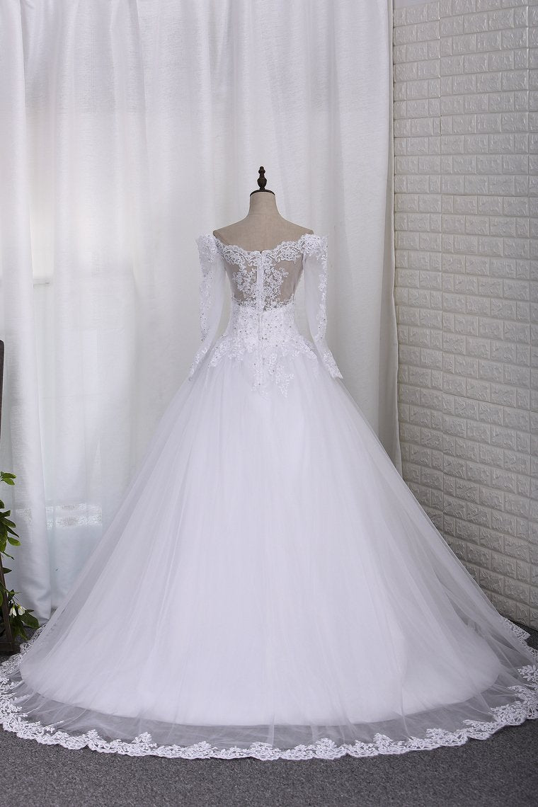 2024 New Wedding Dress A-Line Scoop Long Sleeves Tulle Court Train With Applique