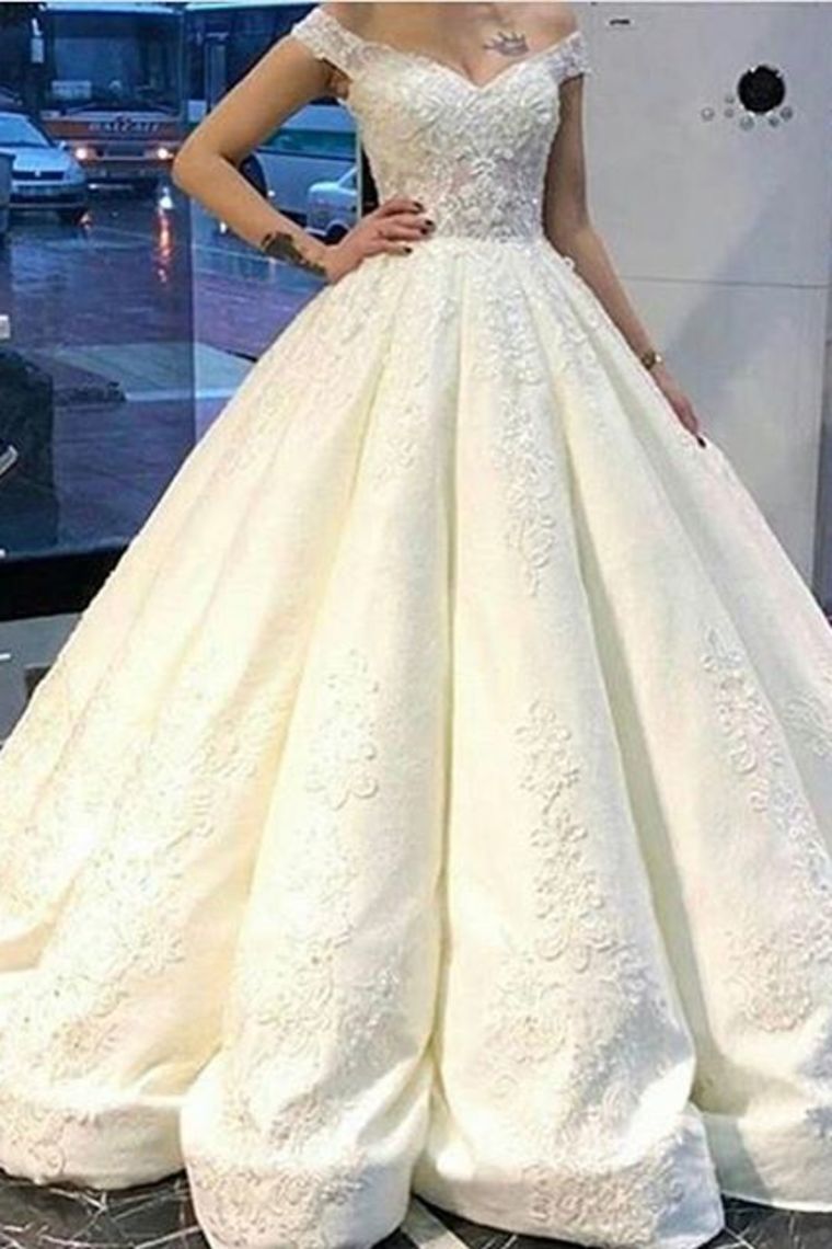 2024 Off The Shoulder A Line Satin Wedding Dresses With Beading Appliques