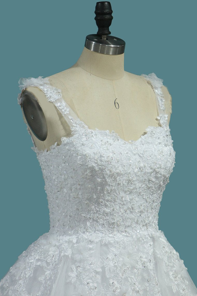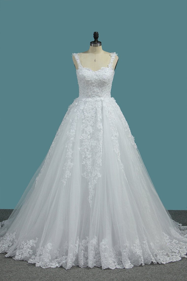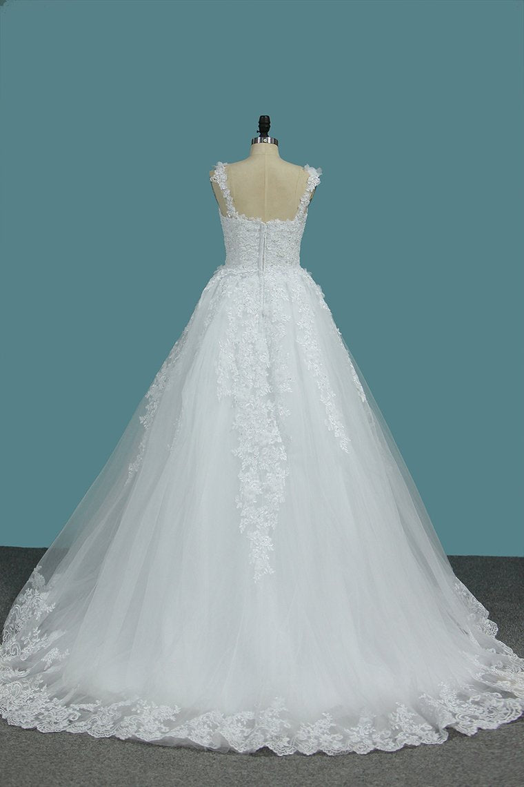 2024 Off The Shoulder A Line Tulle Wedding Dresses With Applique Court Train