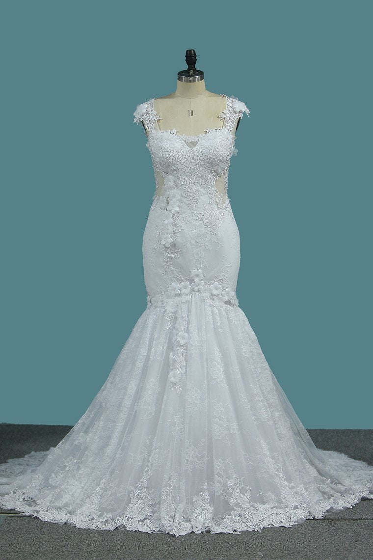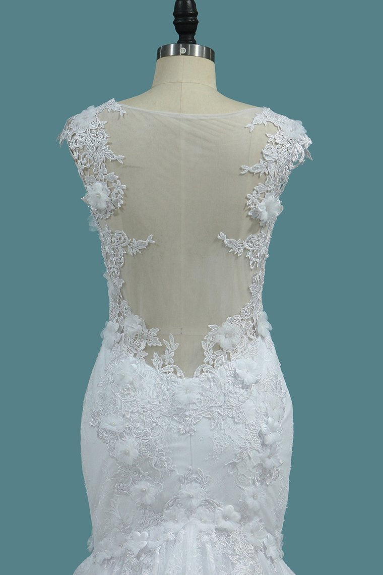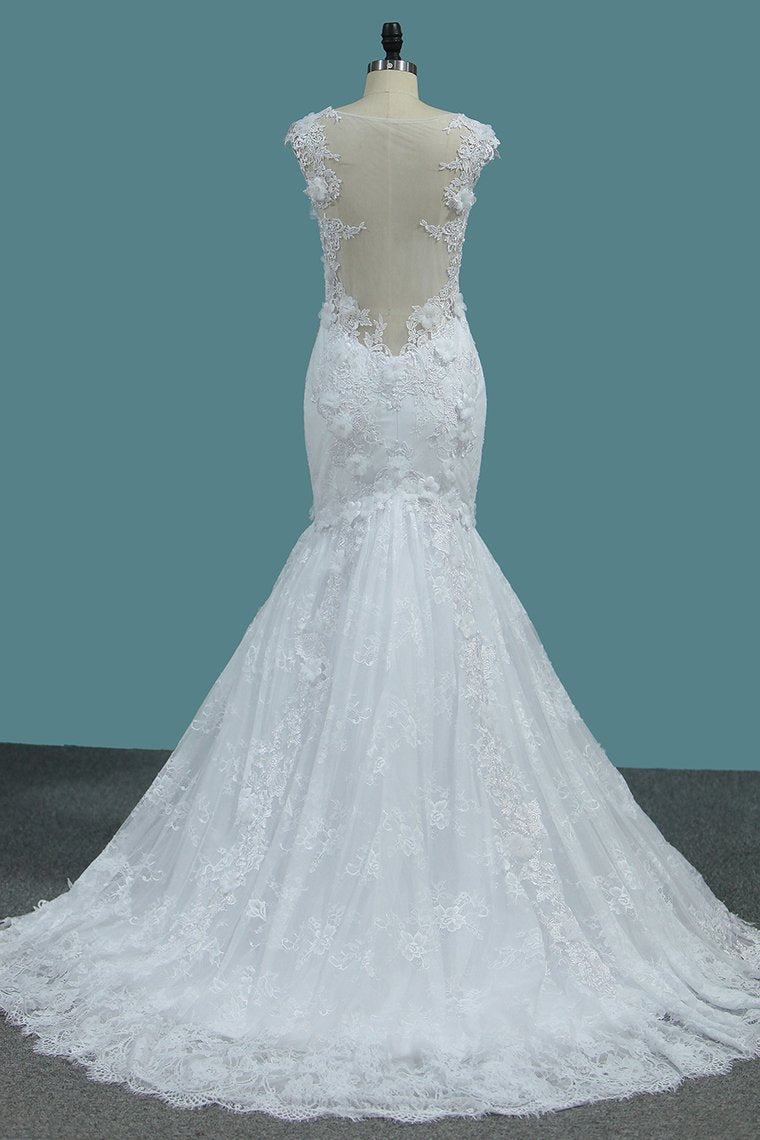 2024 Off The Shoulder Mermaid Lace Wedding Dresses With Handmade Flowers
