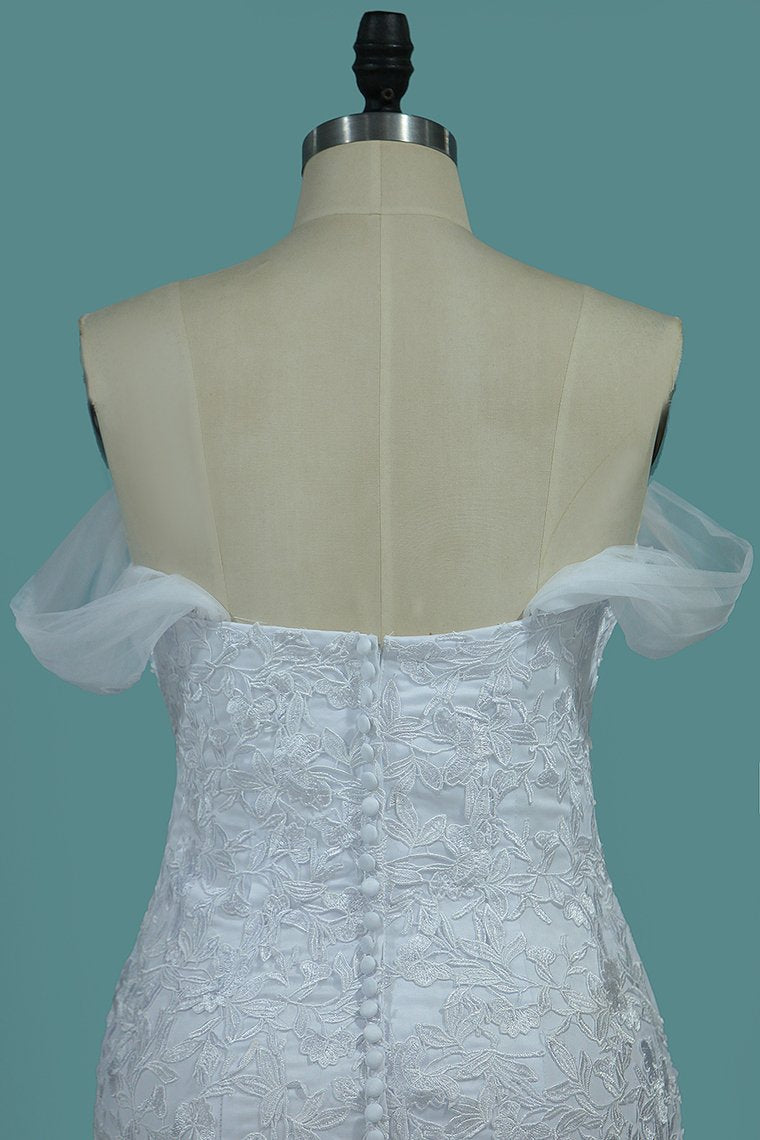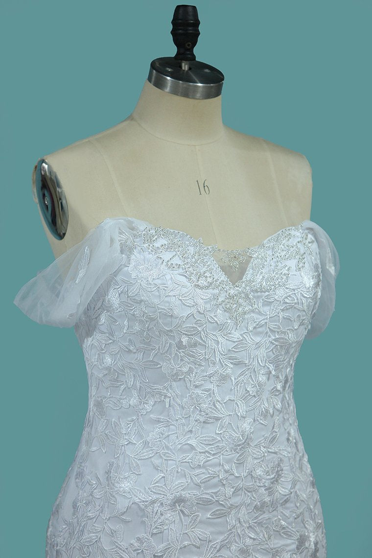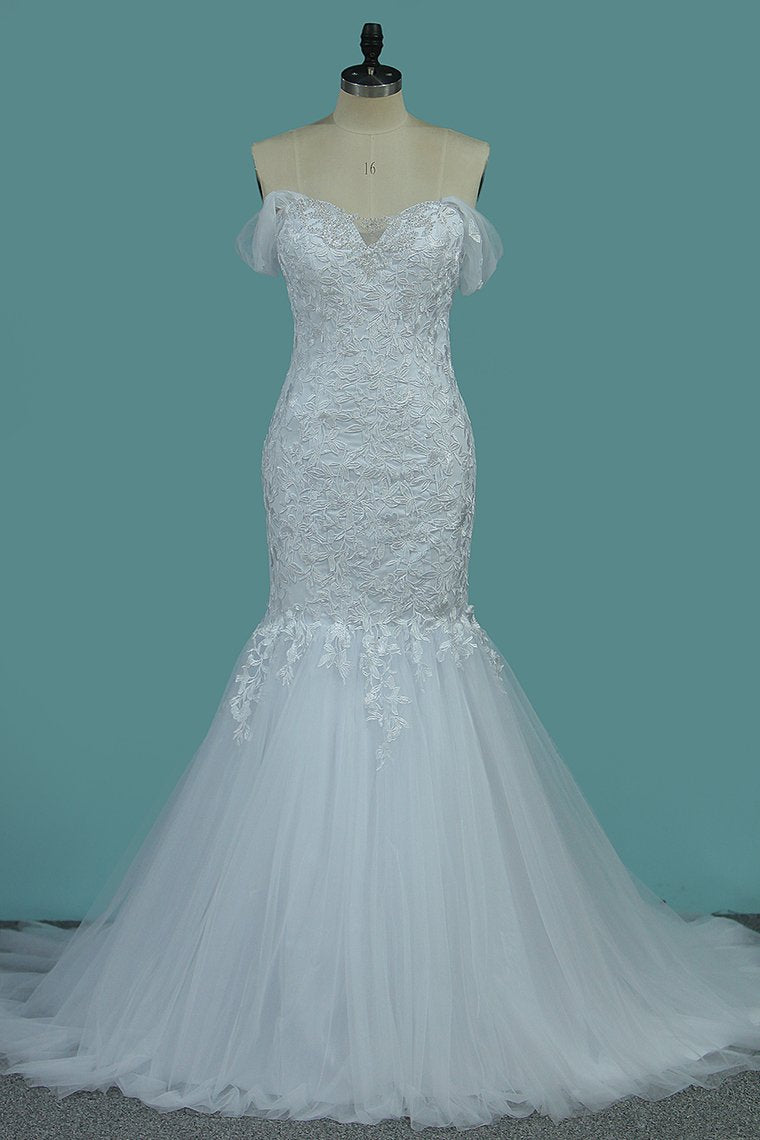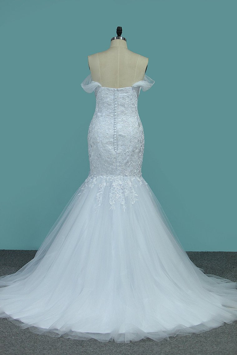 2024 Off-The-Shoulder Mermaid Wedding Dresses Tulle With Applique Court Train