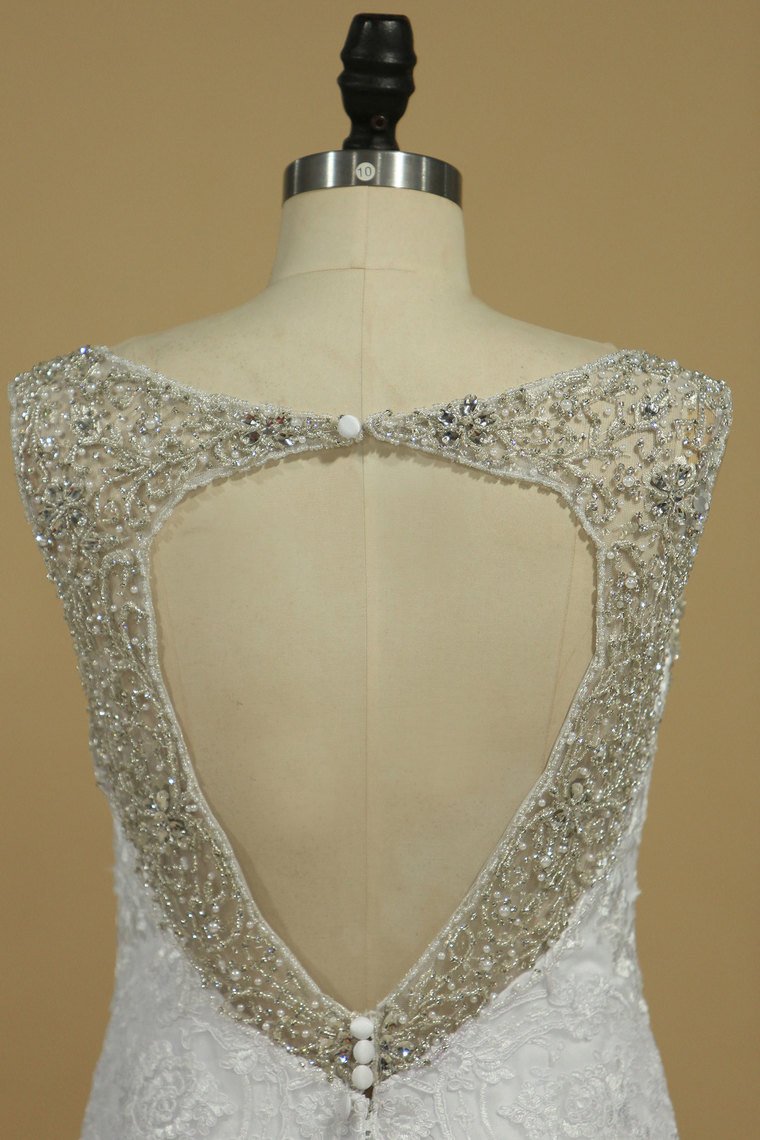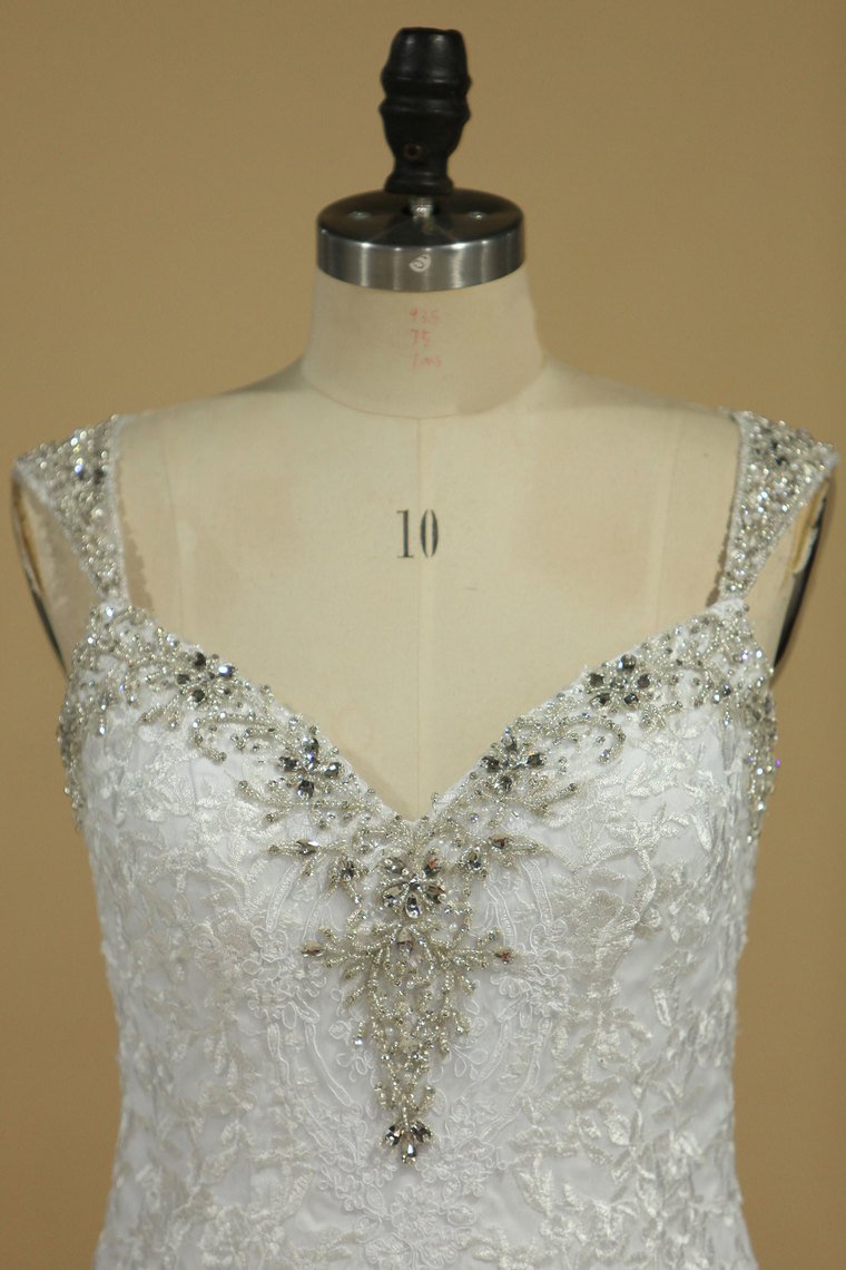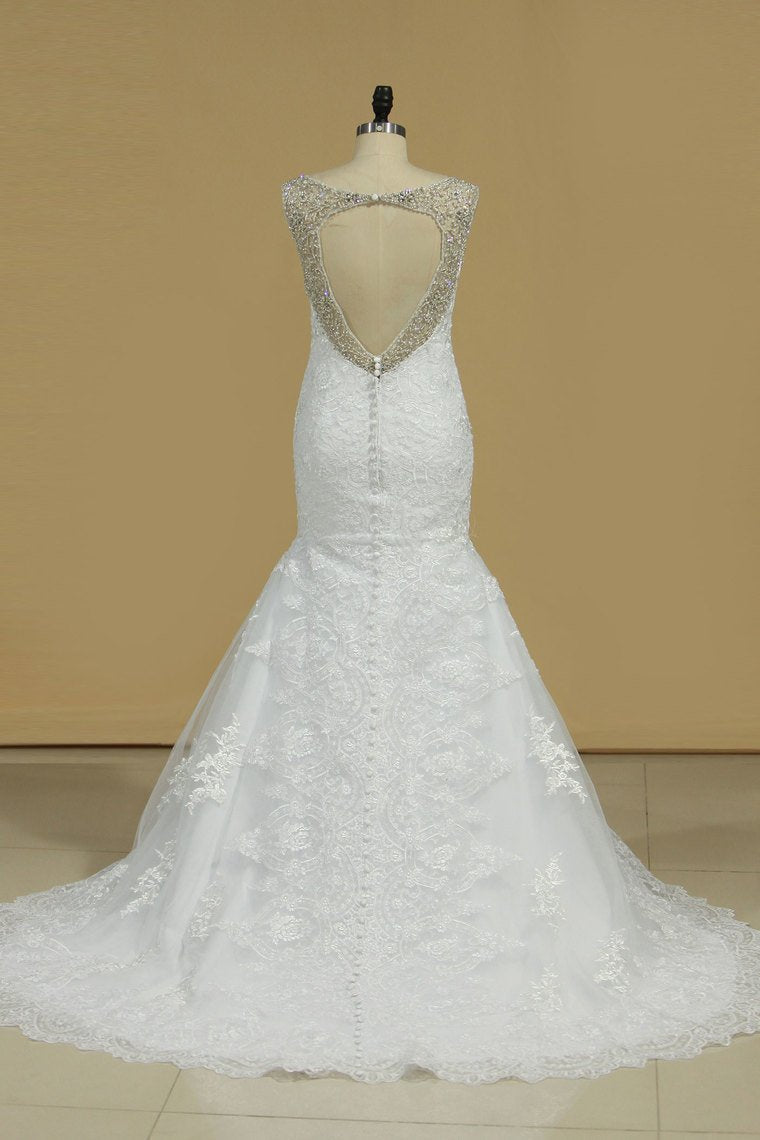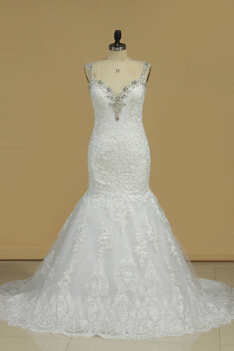 2024 Open Back Straps Mermaid Wedding Dresses With Applique Court Train
