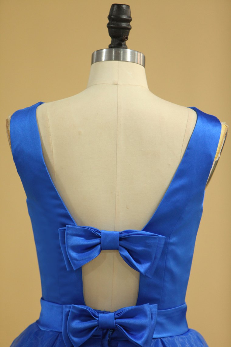 2024 Plus Size Bateau Neckline A-Line Organza & Satin Wedding Dresses With Handmade Bowknot