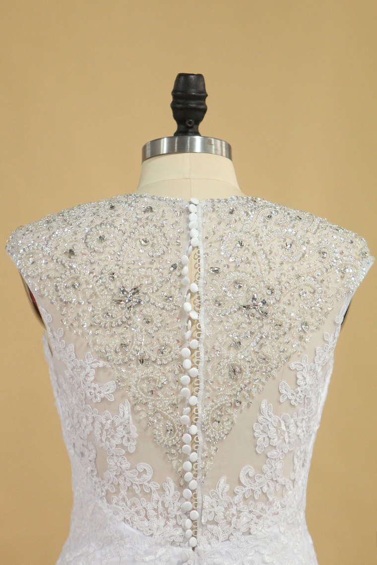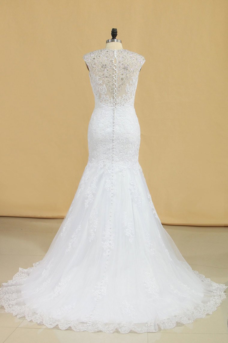 2024 Plus Size Mermaid Wedding Dresses V Neck With Beads And Applique Court Train Tulle
