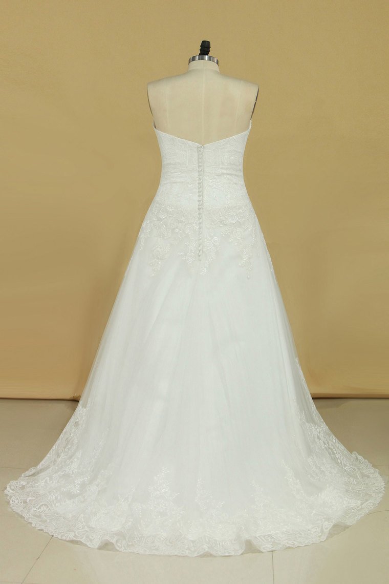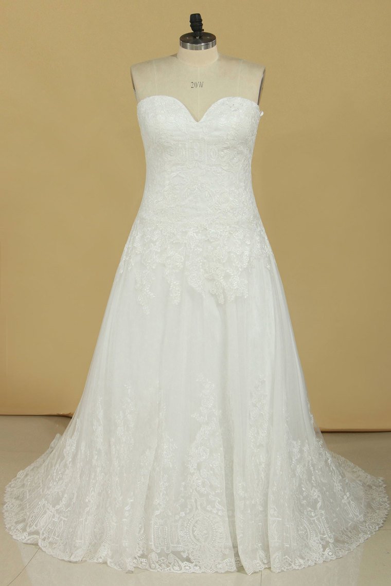 2024 Plus Size Sweetheart Tulle With Applique Court Train A Line Wedding Dresses