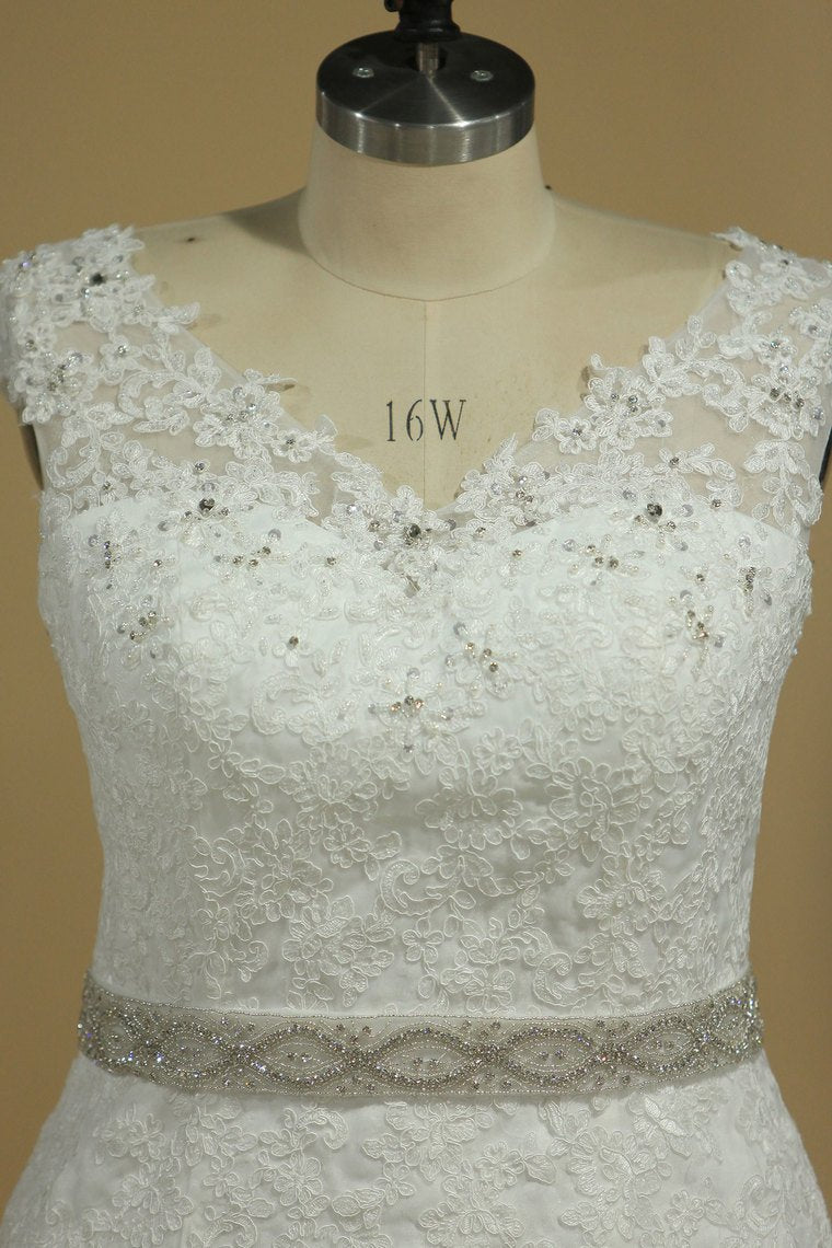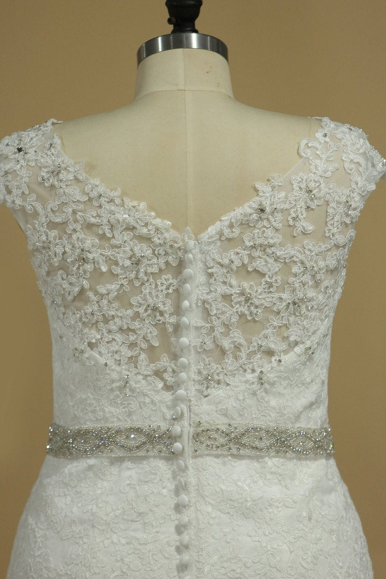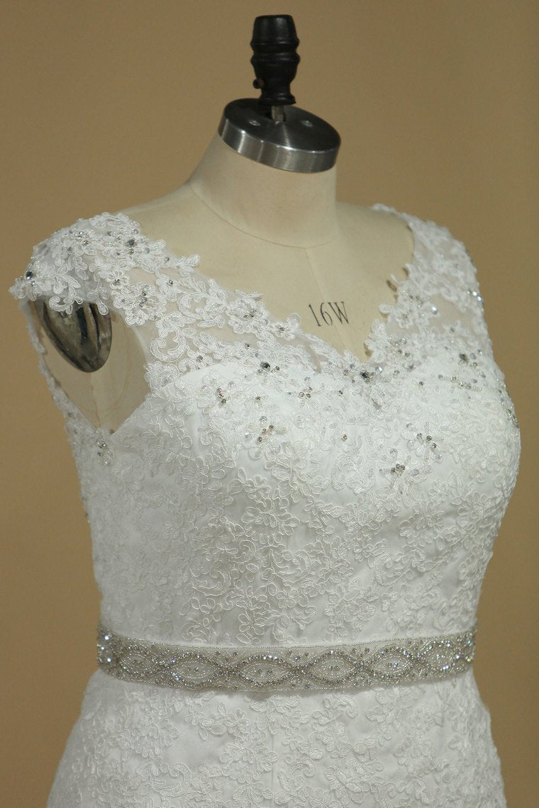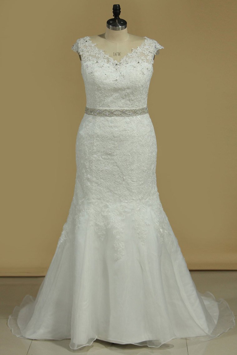 2024 Plus Size Wedding Dresses Mermaid Tulle With Applique Court Train
