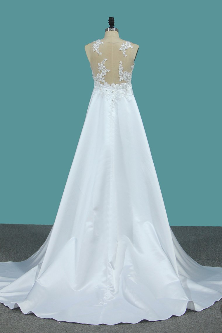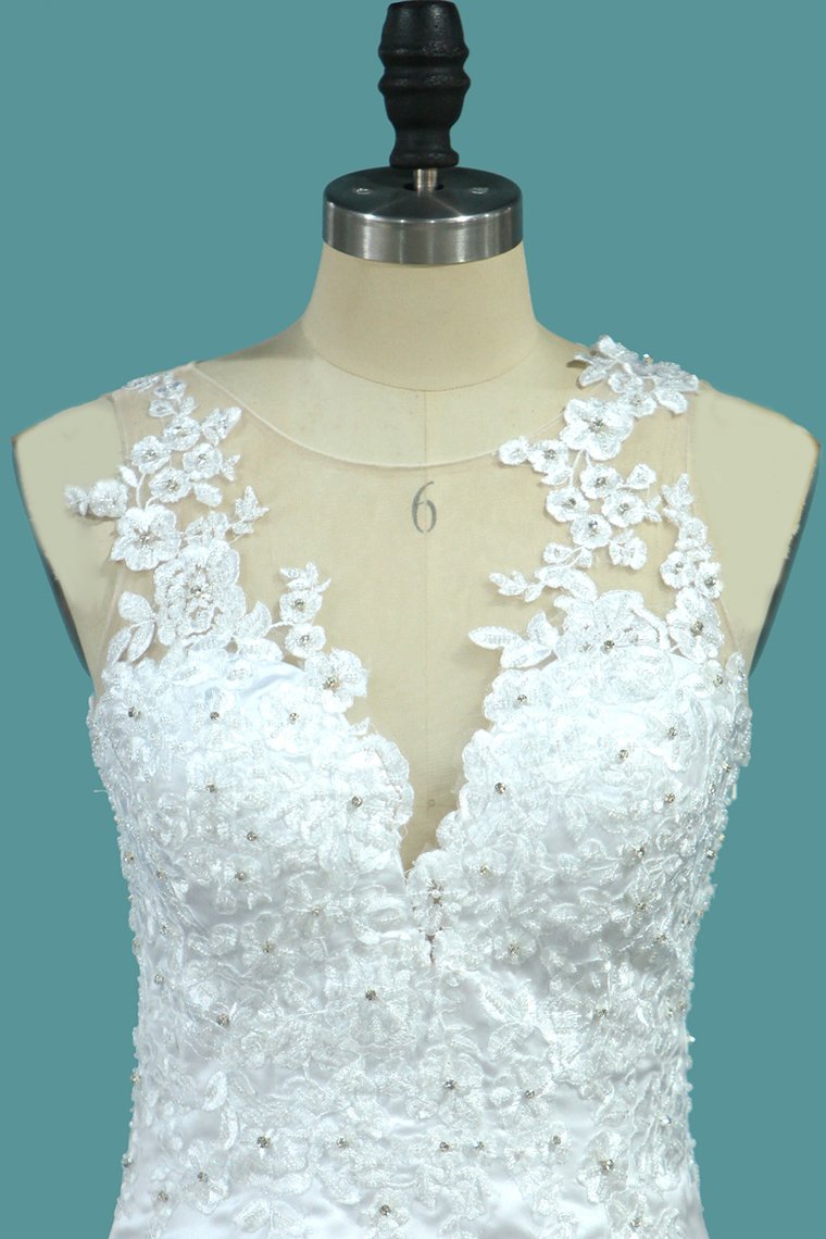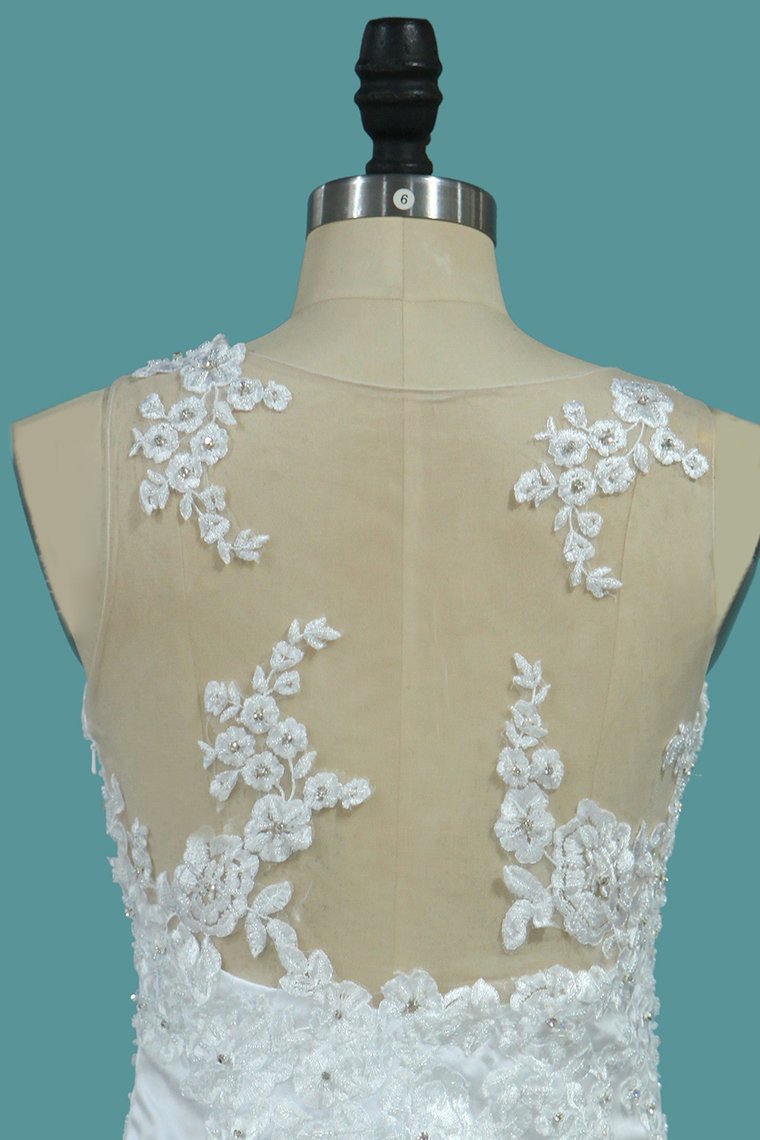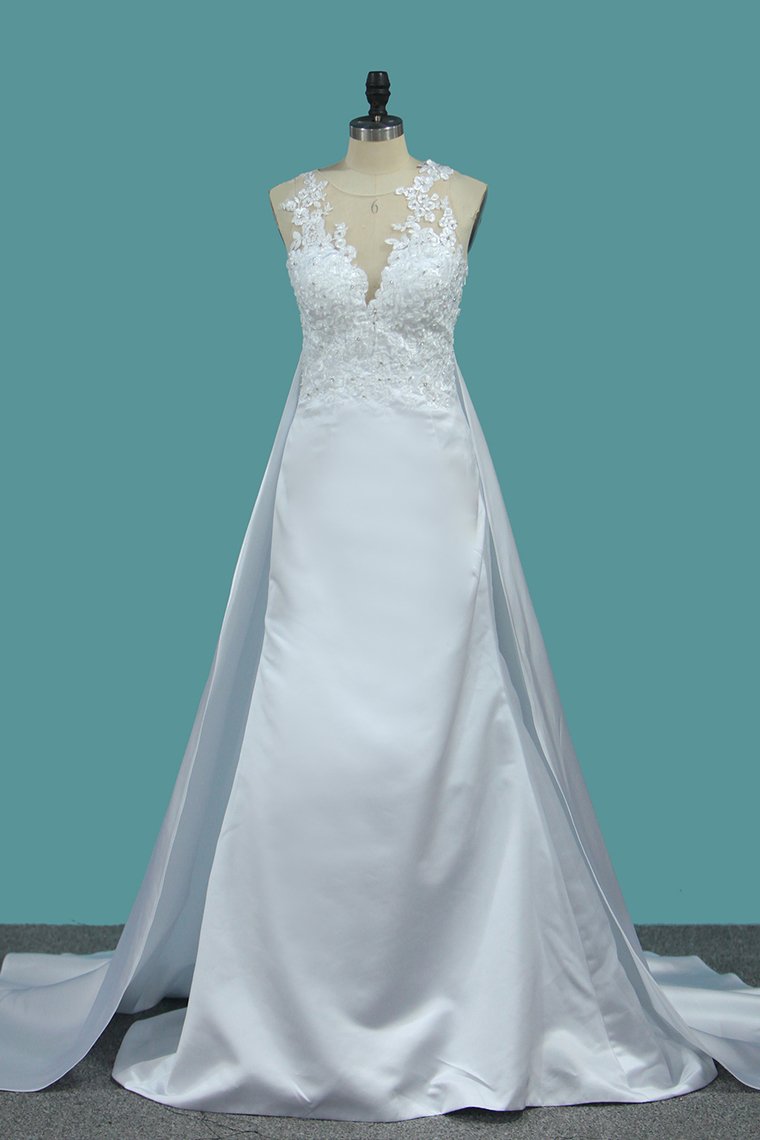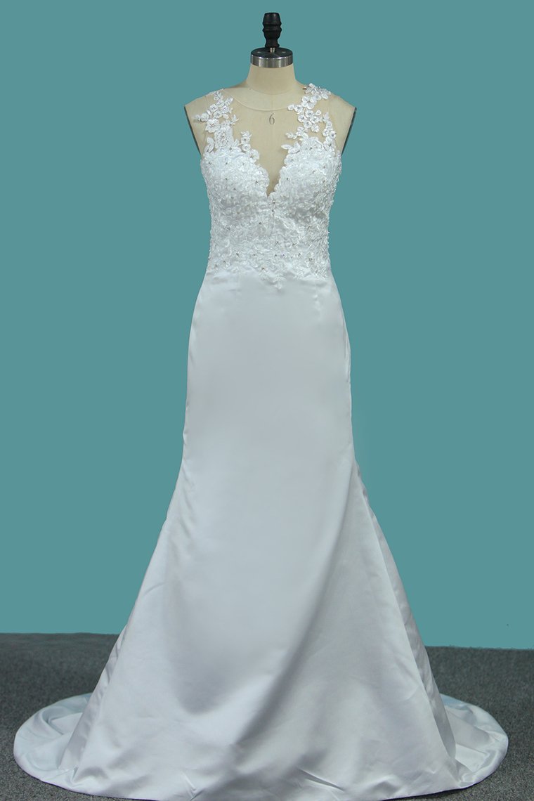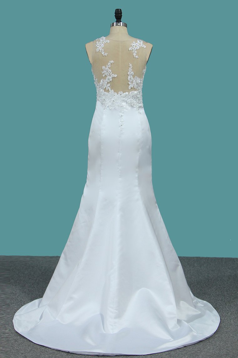 2024 Satin Mermaid Scoop Court Train Detachable Wedding Dresses With Applique